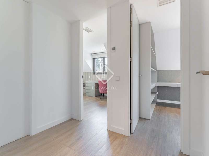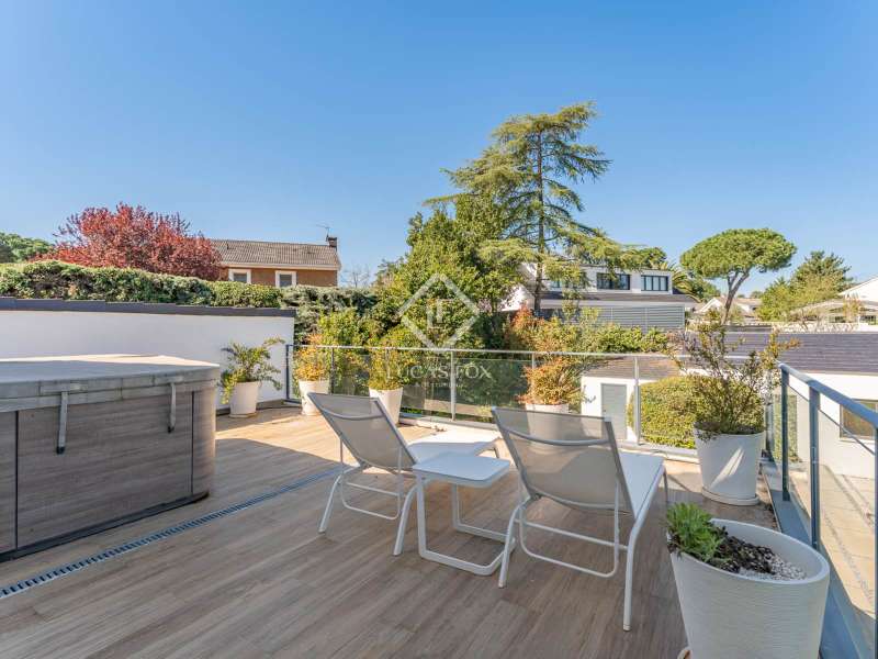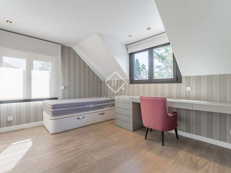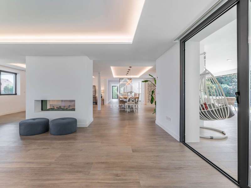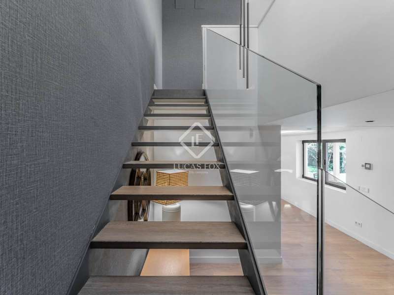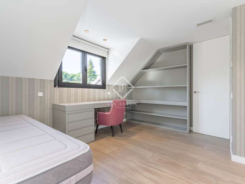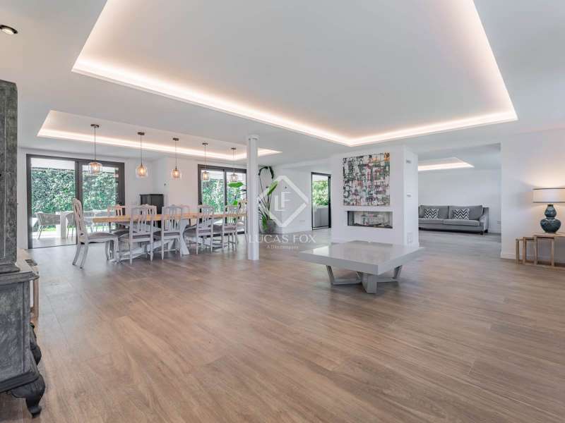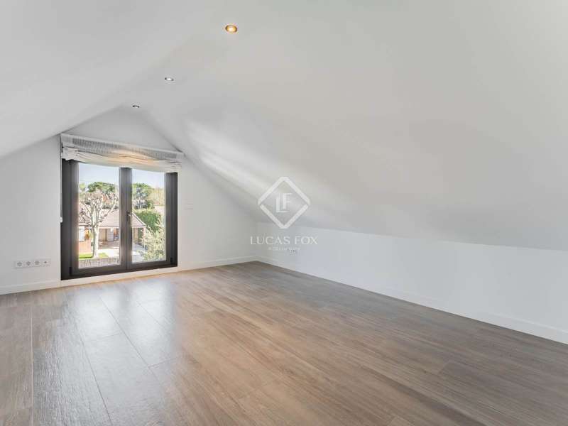 Lucas Fox is proud to present this bright and welcoming modern home in the most private area of the exclusive Monteclaro development . Completely renovated to the highest standards, this home features large windows and high-quality finishes and offers great privacy, just a stone's throw from the social club in the quietest corner of the development. The immaculate front garden leads us to the entrance porch, which leads into a spacious and bright entrance hall. From there, we access the main living room and dining room, both open spaces bathed in natural light through a large window overlooking the garden and pool. To the left is the kitchen, also connected to the dining room. The generously sized kitchen stands out for its abundant storage space and a large central island that also functions as a practical dining room . On the opposite side of the ground floor, we find a cozy and comfortable living room, as well as a large study. The floor is completed with a guest toilet, a staff bedroom with a private bathroom , and a practical laundry area . On the upper floor , there are two spacious bedrooms with private bathrooms, including the spectacular main bedroom with private bathroom, which also features an elegant dressing room and a wonderful private terrace with a Jacuzzi. All rooms stand out for their luxurious finishes and meticulous attention to detail. The floor is completed by two additional bedrooms that share a full bathroom . Exterior, a well-kept perimeter garden with landscape design and lighting stands out, providing privacy and beauty in every corner. However, the spectacular infinity pool with a heated water circuit is a highlight, ideal for year-round enjoyment. There are two auxiliary buildings: a gym with a sauna and full bathroom , and a closed parking area for two large cars and plenty of storage space. For total comfort, the property boasts excellent thermal and acoustic insulation thanks to rock wool waterproofing under the roof. It features a flat concrete tile roof and white lacquered tilt-and-turn aluminum carpentry with Cortizo brand double glazing and thermal aluminum blinds. Energy efficiency is another of its great features: it incorporates solar panels, an aerothermics system, ducted air conditioning, underfloor heating and hydraulic cooling, as well as LED lighting property. The property boasts high-quality finishes such as Banni flooring, kitchen, bathrooms, master dressing room and closets, Neff appliances , a video intercom and security camera system, and a new staircase with cantilevered steps and glass. In short, this is an exceptional property where luxury and elegance blend perfectly with tranquility and comfort. All this is just a stone's throw from the Monteclaro social club, a shopping centre , and Everest School. The property is easily accessible for viewing. Contact Lucas Fox today by phone or email to arrange a viewing. We work 7 days a week to accommodate our clients' needs. You can also visit us at our Lucas Fox lounge at Avenida de Europa, 38 in Pozuelo for a cup of coffee so we can discuss your requirements in more detail and help you find your perfect home or investment.