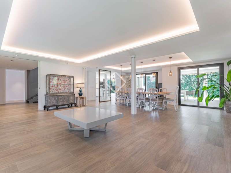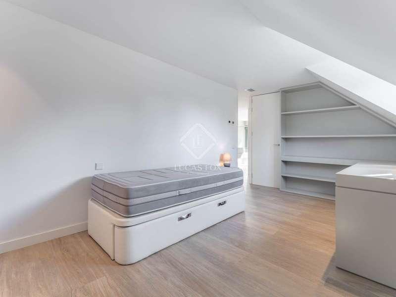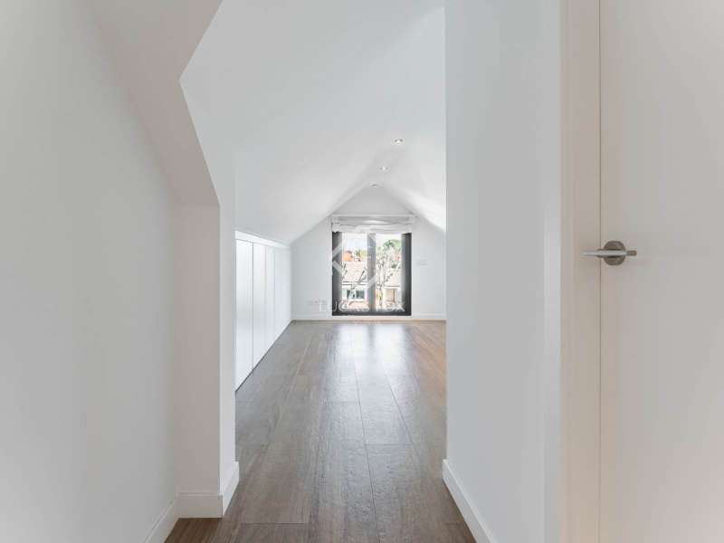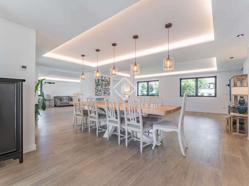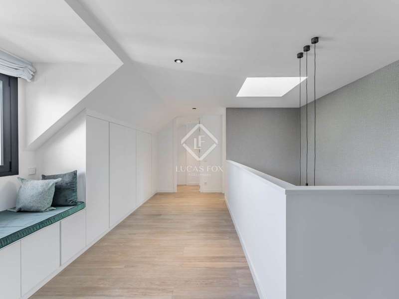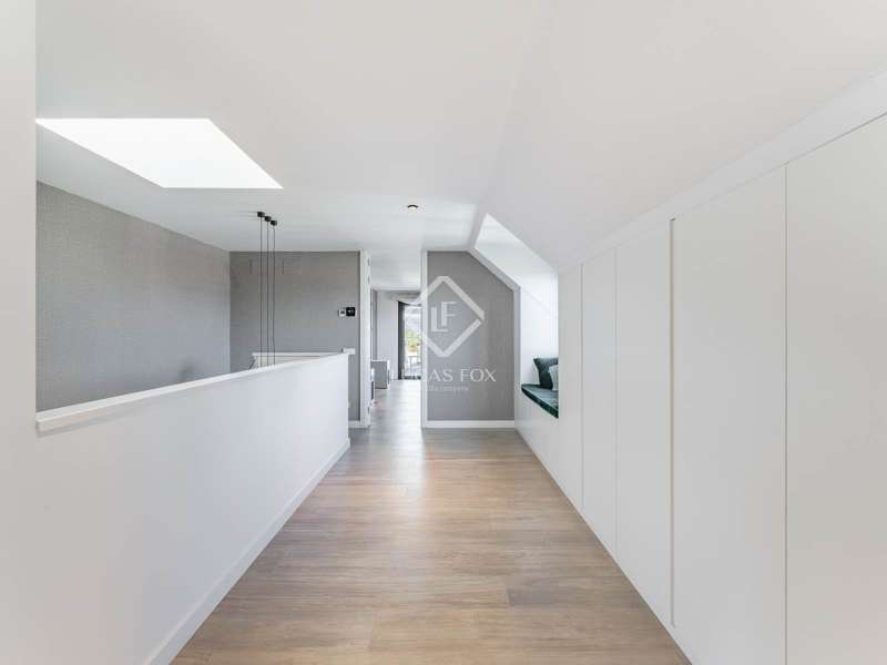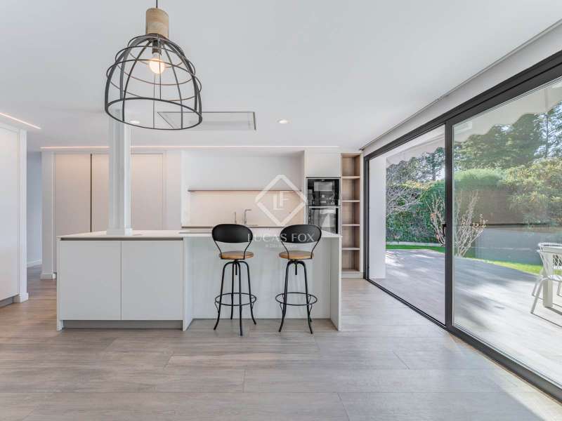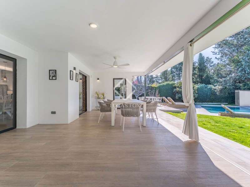 Lucas Fox is proud to present this bright and welcoming modern home in the most private area of the exclusive Monteclaro development . Completely renovated to the highest standards, this home features large windows and high-quality finishes and offers great privacy, just a stone's throw from the social club in the quietest corner of the development. The immaculate front garden leads us to the entrance porch, which leads into a spacious and bright entrance hall. From there, we access the main living room and dining room, both open spaces bathed in natural light through a large window overlooking the garden and pool. To the left is the kitchen, also connected to the dining room. The generously sized kitchen stands out for its abundant storage space and a large central island that also functions as a practical dining room . On the opposite side of the ground floor, we find a cozy and comfortable living room, as well as a large study. The floor is completed with a guest toilet, a staff bedroom with a private bathroom , and a practical laundry area . On the upper floor , there are two spacious bedrooms with private bathrooms, including the spectacular main bedroom with private bathroom, which also features an elegant dressing room and a wonderful private terrace with a Jacuzzi. All rooms stand out for their luxurious finishes and meticulous attention to detail. The floor is completed by two additional bedrooms that share a full bathroom . Exterior, a well-kept perimeter garden with landscape design and lighting stands out, providing privacy and beauty in every corner. However, the spectacular infinity pool with a heated water circuit is a highlight, ideal for year-round enjoyment. There are two auxiliary buildings: a gym with a sauna and full bathroom , and a closed parking area for two large cars and plenty of storage space. For total comfort, the property boasts excellent thermal and acoustic insulation thanks to rock wool waterproofing under the roof. It features a flat concrete tile roof and white lacquered tilt-and-turn aluminum carpentry with Cortizo brand double glazing and thermal aluminum blinds. Energy efficiency is another of its great features: it incorporates solar panels, an aerothermics system, ducted air conditioning, underfloor heating and hydraulic cooling, as well as LED lighting property. The property boasts high-quality finishes such as Banni flooring, kitchen, bathrooms, master dressing room and closets, Neff appliances , a video intercom and security camera system, and a new staircase with cantilevered steps and glass. In short, this is an exceptional property where luxury and elegance blend perfectly with tranquility and comfort. All this is just a stone's throw from the Monteclaro social club, a shopping centre , and Everest School. The property is easily accessible for viewing. Contact Lucas Fox today by phone or email to arrange a viewing. We work 7 days a week to accommodate our clients' needs. You can also visit us at our Lucas Fox lounge at Avenida de Europa, 38 in Pozuelo for a cup of coffee so we can discuss your requirements in more detail and help you find your perfect home or investment.