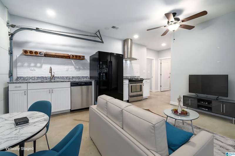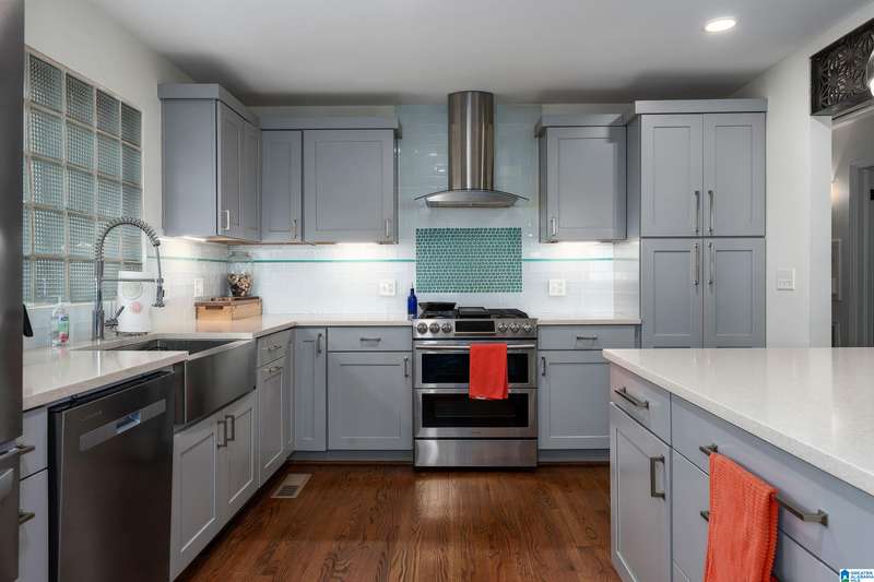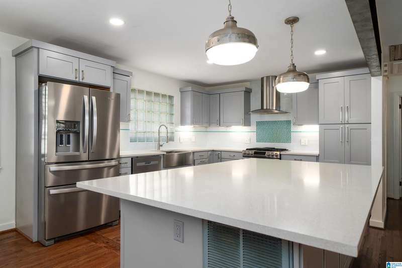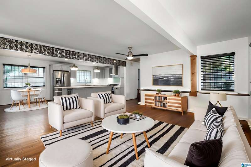 Gorgeous, updated Crestwood North home with guest house that could be income property. An open layout connects the living room to the kitchen, creating large entertainment space. Kitchen features gray cabinets, quartz counters, stainless appliances, farmhouse sink, and updated lighting. Custom laser-cut steel beam adds modern style. The unbelievable Primary Suite has its own entry, massive walk-in closet, spacious bedroom, double-sink vanity, water closet, and large glass-tile shower with dual heads. Renovated Hall Bath has subway tile and wood-look floors. Den has fireplace and could split into office and 3rd main house bedroom. Attached guest house includes bedroom, full bath, den, and kitchen. A spacious patio and covered deck extend outdoors. Roof 2022, heat pump 2018, tankless water heater 2017. Near to popular restaurants, breweries, UAB, and downtown. Schedule your private showing today.