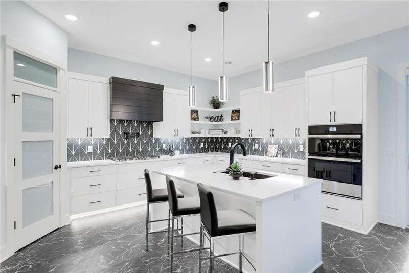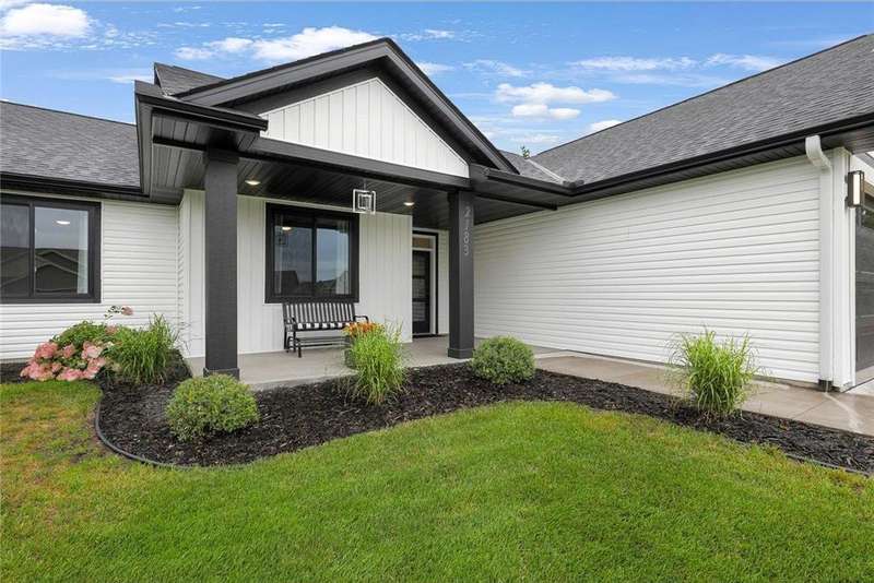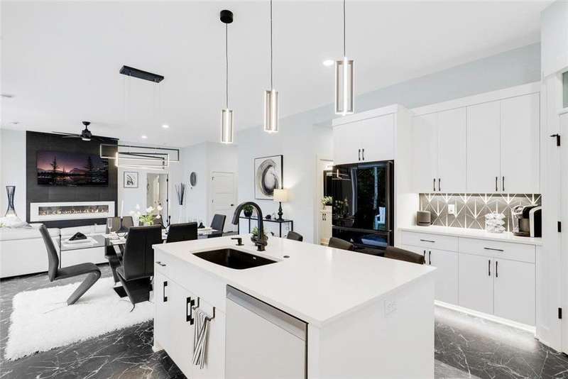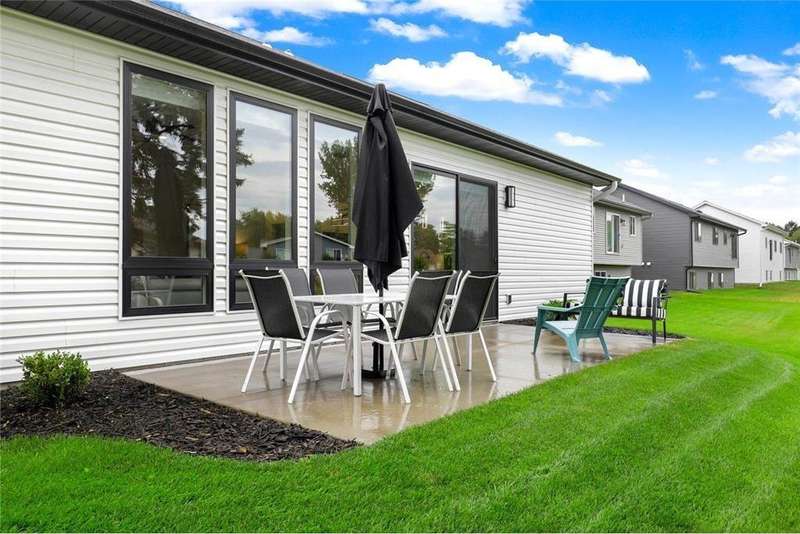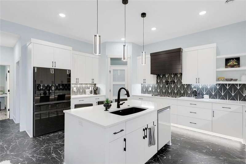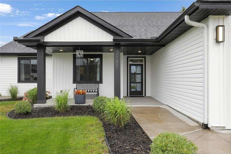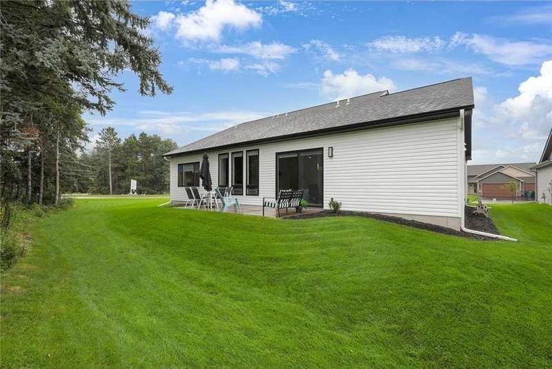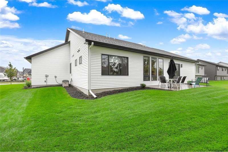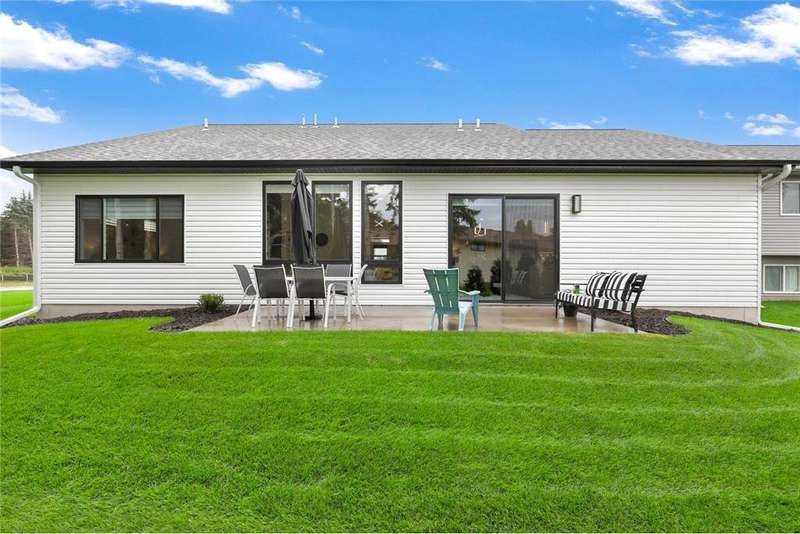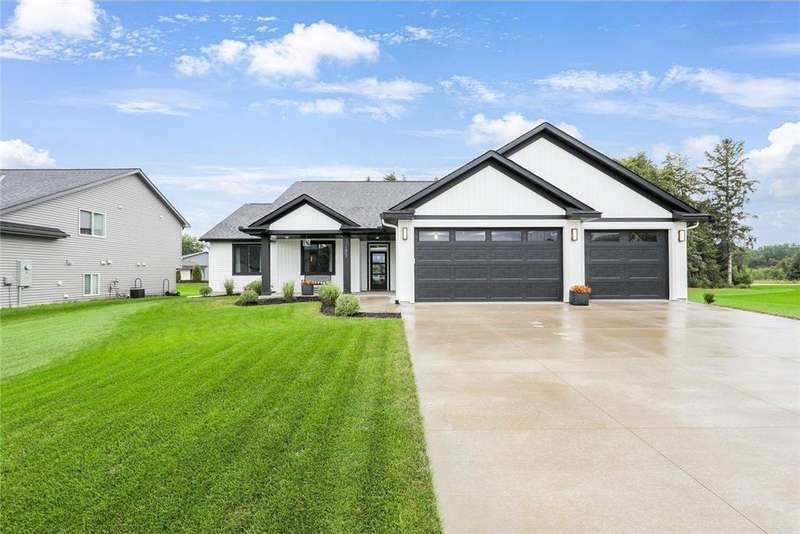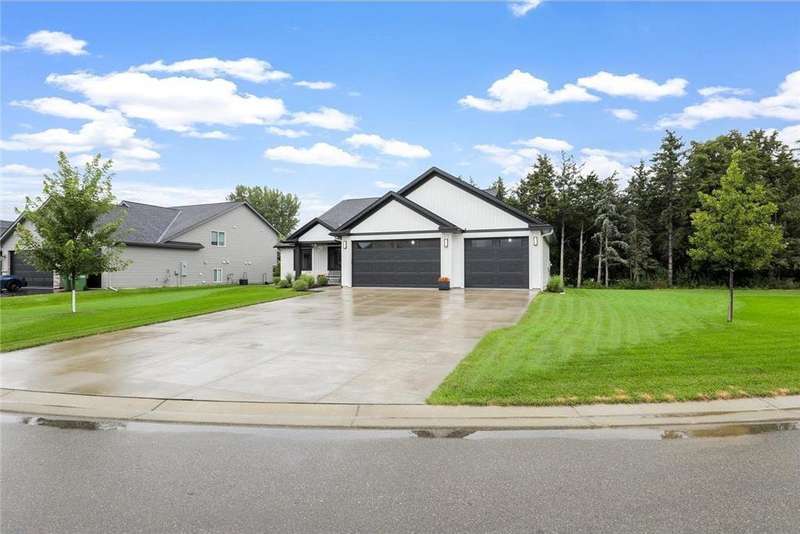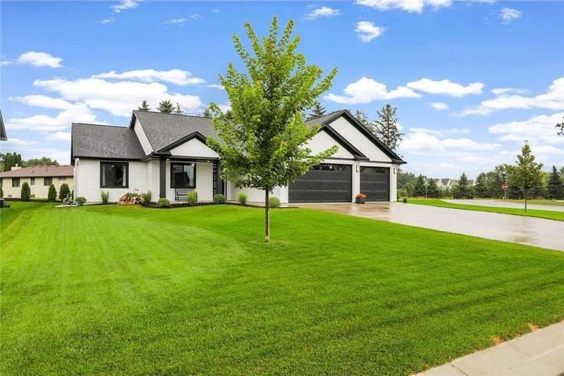 This beautifully designed single-level home combines contemporary style with thoughtful details and custom finishes throughout. Ten-foot ceilings and oversized windows flood the interior with natural light, creating a bright and airy atmosphere from the moment you step inside. The chef’s kitchen is a true centerpiece, featuring quartz countertops, a custom designer tile backsplash, white enamel cabinetry with soft-close feature, and premium appliances including a double convection oven, gas cooktop with vented hood, and pot filler. A walk-in pantry adds both convenience and storage, making this space ideal for everyday living and entertaining. The living room is anchored by a tiled accent wall with a modern electric fireplace, providing warmth and a contemporary focal point. Elegant lighting throughout the home adds ambiance, from recessed ceiling lights to contemporary custom fixtures and subtle under-cabinet accents. Luxury vinyl plank flooring, custom paint, and premium finishes tie the design together with understated sophistication. The primary suite serves as a private retreat with a spa-like ensuite bath featuring a glass-enclosed shower with a striking tile accent wall, soaking tub, dual vanities, and a large walk-in closet. Floating vanities with integrated LED lighting elevate both bathrooms with a sleek, modern edge Additional comforts include powered blinds, premium white enamel paneled doors with designer hardware, and a practical laundry and mud room featuring elevated washer and dryer, built-in cabinetry, pocket door, and a bench with coat hooks. The custom three-stall garage is fully finished with epoxy flooring, insulated custom painted walls, 8’ tall doors with windows, a utility sink, and an extra-deep bay offering space for a fourth vehicle, workshop, or hobby area. Set on a spacious corner lot, the property offers inviting outdoor living with a large back patio and a mature tree line for added privacy. The welcoming front entry features a spacious covered porch, an ideal place to relax and unwind. Situated in the heart of Blaine, this home is tucked away in a prime location close to shopping, restaurants, the National Sports Center and other Blaine attractions, as well as scenic Sunrise Lake with its walking and biking trails. Beautifully designed, meticulously maintained, and loaded with upgrades and custom touches throughout, this home is move-in ready and designed to impress! We cannot wait to have you visit!
