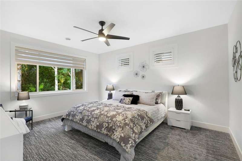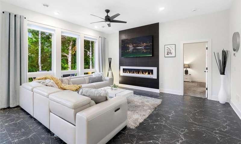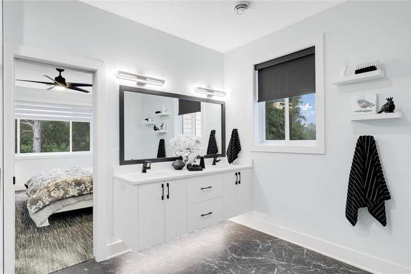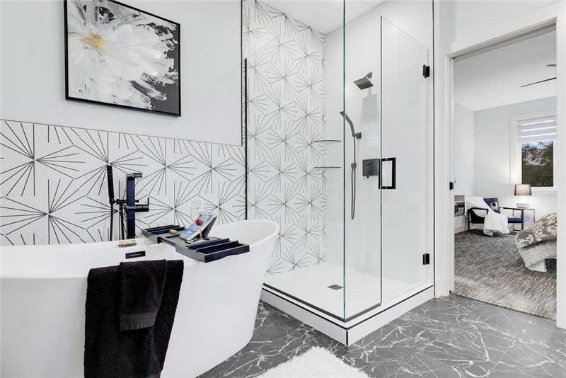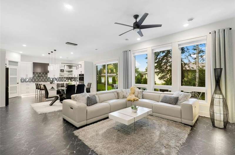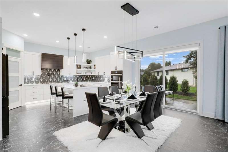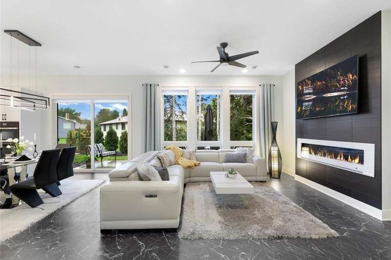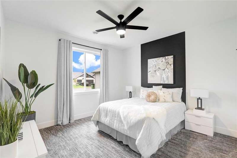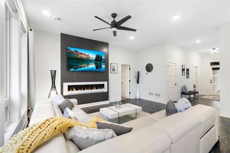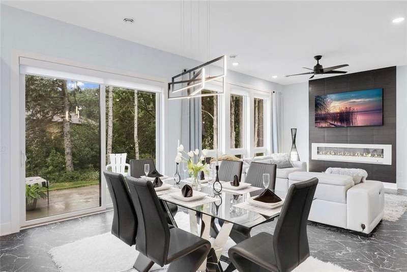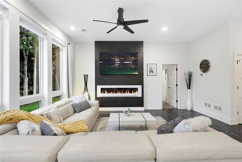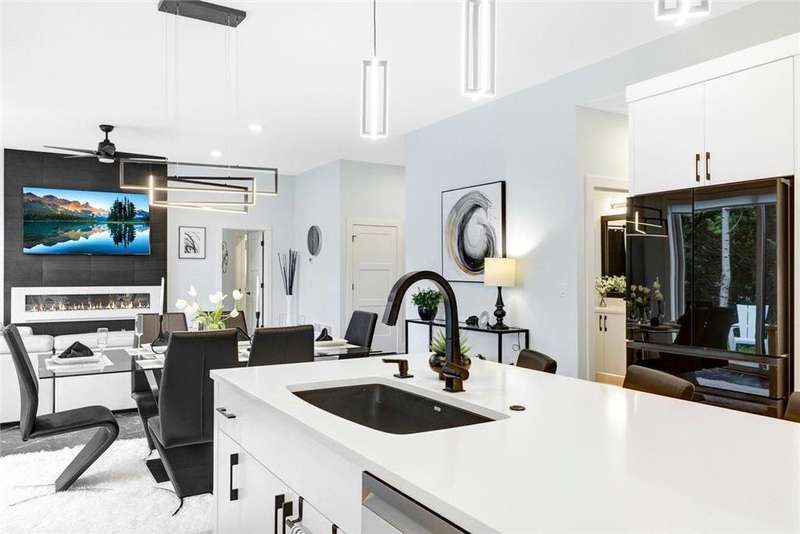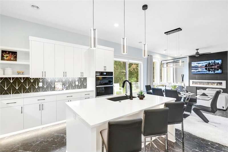 This beautifully designed single-level home combines contemporary style with thoughtful details and custom finishes throughout. Ten-foot ceilings and oversized windows flood the interior with natural light, creating a bright and airy atmosphere from the moment you step inside. The chef’s kitchen is a true centerpiece, featuring quartz countertops, a custom designer tile backsplash, white enamel cabinetry with soft-close feature, and premium appliances including a double convection oven, gas cooktop with vented hood, and pot filler. A walk-in pantry adds both convenience and storage, making this space ideal for everyday living and entertaining. The living room is anchored by a tiled accent wall with a modern electric fireplace, providing warmth and a contemporary focal point. Elegant lighting throughout the home adds ambiance, from recessed ceiling lights to contemporary custom fixtures and subtle under-cabinet accents. Luxury vinyl plank flooring, custom paint, and premium finishes tie the design together with understated sophistication. The primary suite serves as a private retreat with a spa-like ensuite bath featuring a glass-enclosed shower with a striking tile accent wall, soaking tub, dual vanities, and a large walk-in closet. Floating vanities with integrated LED lighting elevate both bathrooms with a sleek, modern edge Additional comforts include powered blinds, premium white enamel paneled doors with designer hardware, and a practical laundry and mud room featuring elevated washer and dryer, built-in cabinetry, pocket door, and a bench with coat hooks. The custom three-stall garage is fully finished with epoxy flooring, insulated custom painted walls, 8’ tall doors with windows, a utility sink, and an extra-deep bay offering space for a fourth vehicle, workshop, or hobby area. Set on a spacious corner lot, the property offers inviting outdoor living with a large back patio and a mature tree line for added privacy. The welcoming front entry features a spacious covered porch, an ideal place to relax and unwind. Situated in the heart of Blaine, this home is tucked away in a prime location close to shopping, restaurants, the National Sports Center and other Blaine attractions, as well as scenic Sunrise Lake with its walking and biking trails. Beautifully designed, meticulously maintained, and loaded with upgrades and custom touches throughout, this home is move-in ready and designed to impress! We cannot wait to have you visit!
