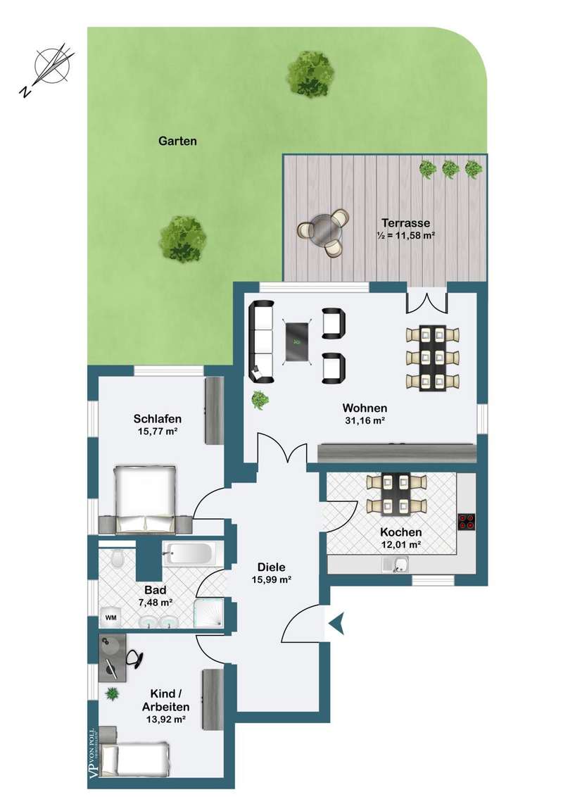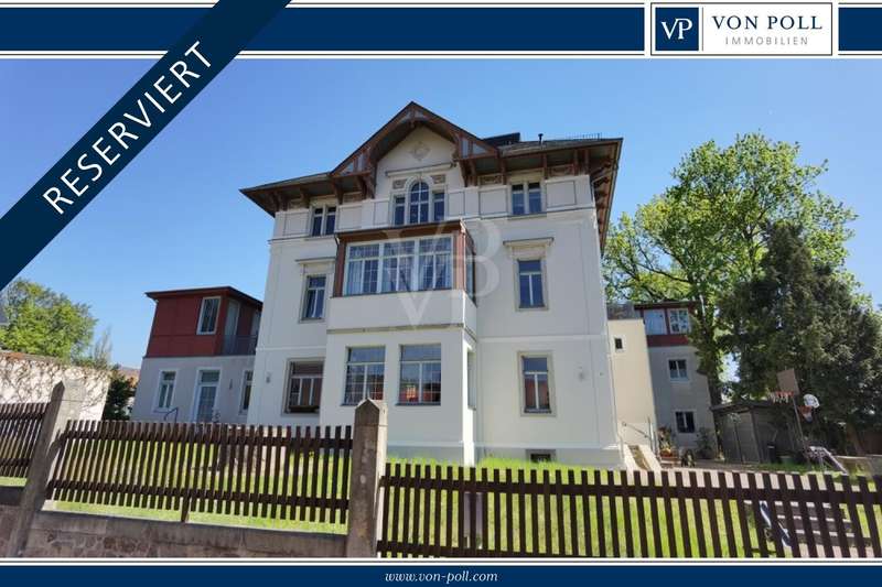 A high-quality 3-room apartment is for sale in a very good and central location in Radebeul Weintraube. The apartment is located in a high-quality listed side building with a garden from 1870. The apartment impresses with its harmonious layout. The straight-lined hallway offers enough space for a cloakroom in the entrance area. The living room with the closed kitchen opens up from here. Large windows provide plenty of daylight and an inviting atmosphere. On your large terrace you can relax wonderfully in a quiet location in any weather and gaze at the hidden outdoor area. The terrace is a great place to spend a lovely barbecue evening. The tiled daylight bathroom is equipped with both a bathtub and an integrated shower. Radiators provide pleasant warmth throughout the apartment. Prefabricated parquet was laid as flooring in all living rooms. We would be happy to present this condominium to you during a viewing appointment.