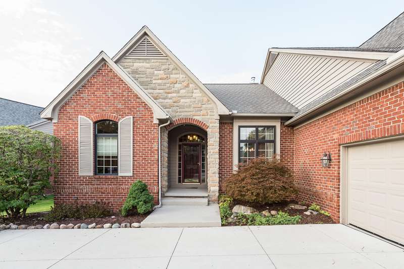 Welcome to this beautifully maintained detached condominium in Highpointe at Stonebridge community, ideally situated on a premium lot with serene views of the 17th fairway and Twin Island Pond. This condo features a welcoming open floor plan. Step into the inviting foyer that opens to a spacious great room with vaulted ceilings, a fireplace, and expansive windows inviting natural light. The formal dining room, also with vaulted ceilings has hardwood flooring providing an elegant setting for entertaining. The large kitchen includes abundant cabinetry, granite countertops, stainless steel appliances, and a central island--ideal for casual meals. A spacious breakfast room, with gorgeous views and direct access to the deck, provides the perfect spot for morning coffee or evening relaxation... The main-level primary suite is a private retreat with a vaulted ceiling, scenic views of the backyard, a walk-in closet, and an en-suite bathroom featuring ceramic tile flooring, a soaking tub, a separate shower, and dual vanities. A flexible office/den space could easily be converted into a third bedroom. The entry level also includes a convenient half bath and laundry room. The upper level features a generously sized guest suite complete with its own full bath and walk-in closet. The partially finished basement includes a family room with three daylight windows and brand-new carpeting. It's plumbed for an additional bathroom and offers ample space for future expansion and storage. Enjoy the ease of condo living in a vibrant golf course community featuring walking trails, tennis courts, a playground, and a private beach area. HOA fees cover lawn maintenance, sprinkler system water, and snow removal. Pittsfield township property taxes. Close to shopping, dining, and major highways for added convenience.