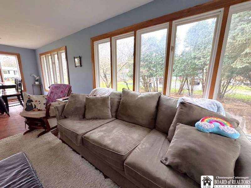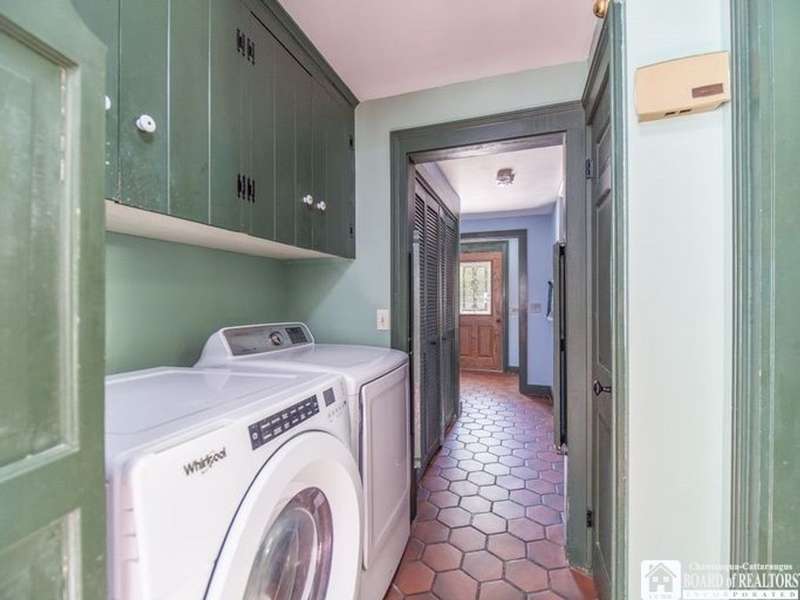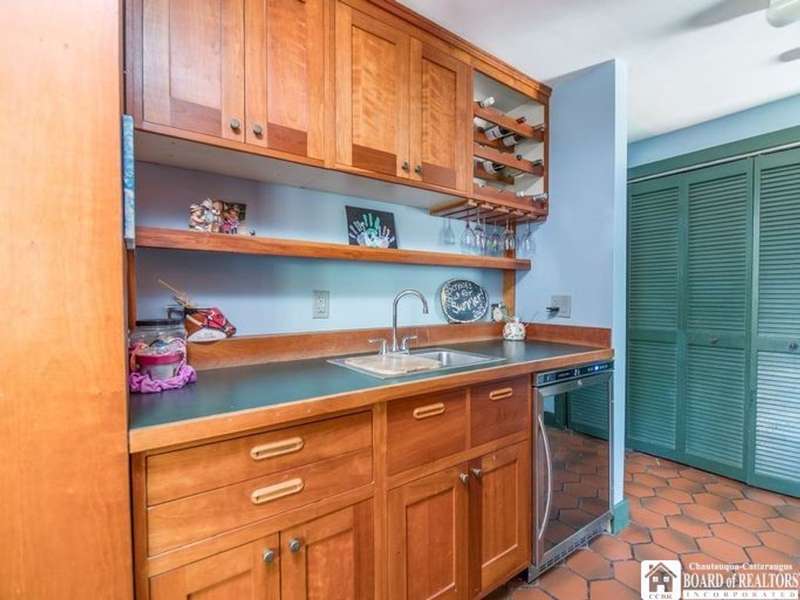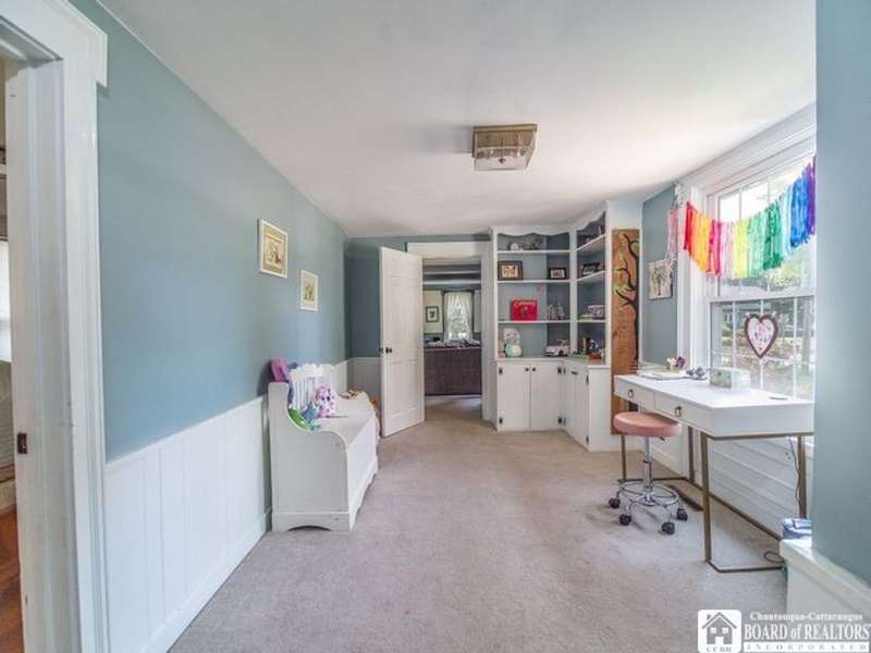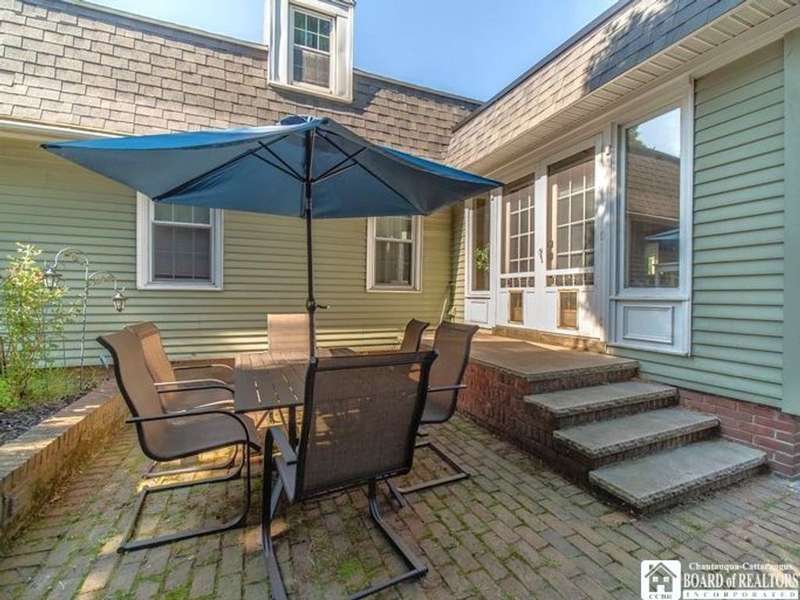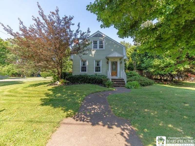 Colonial on the Avenue! Classic design offering an abundant amount of space & room for entertaining, an in-home office, and cozy personal living space! A horseshoe driveway along the side leads to small covered porch and handy entry into your mudroom, 2nd driveway leads to the backyard as well as attached rear garage! A formal front entryway takes you through into the expansive formal living room with woodburning fireplace for crackling warmth on cold winter evenings and a lovely spot for Holidays and gatherings. A formal dining room for special dinners and celebrations opens out from the living room inviting larger dinner seating . The kitchen and prep area has great space, offering nook with built in desk or phone/laptop charging area, a sidebar/wetbar with wine chiller, vegetable sink & winerack. So much room to this kitchen with Northern & Eastern light exposure...many solid wood cupboards, full wall pantry, great counter space as well as super handy breakfast bar with cooktop! Kitchen offers open concept to breakfast & lunch eating area that is surrounded by windows that bathe the room with light and offer huge backyard views! From there you flow into the cozy family room, open concept as well, that is just the right size for conversation, homework, movie watching & winding down from the busy day. French doors take you out to the patio, courtyard & entry around to backyard. Many rooms offer a choice of various bedroom & office spaces... 4-5 bedrooms is easy! First floor has 2 rooms ideal for bedroom use or they can be combined together for possible 1st floor master bedroom with possibility of connecting to the half bath on the other side of the bedroom wall..... upstairs has 3 more bedrooms offering large master bedroom with private bath! Upstairs as well as downstairs office is possible with this layout. 2 Dedicated Central A/C air units & 2 furnaces, one for each wing serve this home well and have individual Smart Thermostats. Electrical service is buried, no wires above! New power outlets & switches furnished with USB charger ports. Nice location to walk to the college, or village parks. Wonderful Fredonia find, a true home you can be proud of!