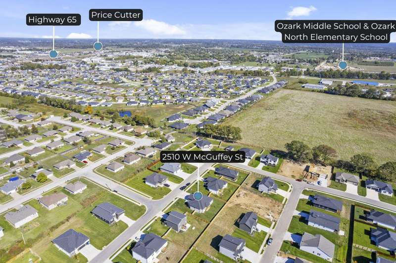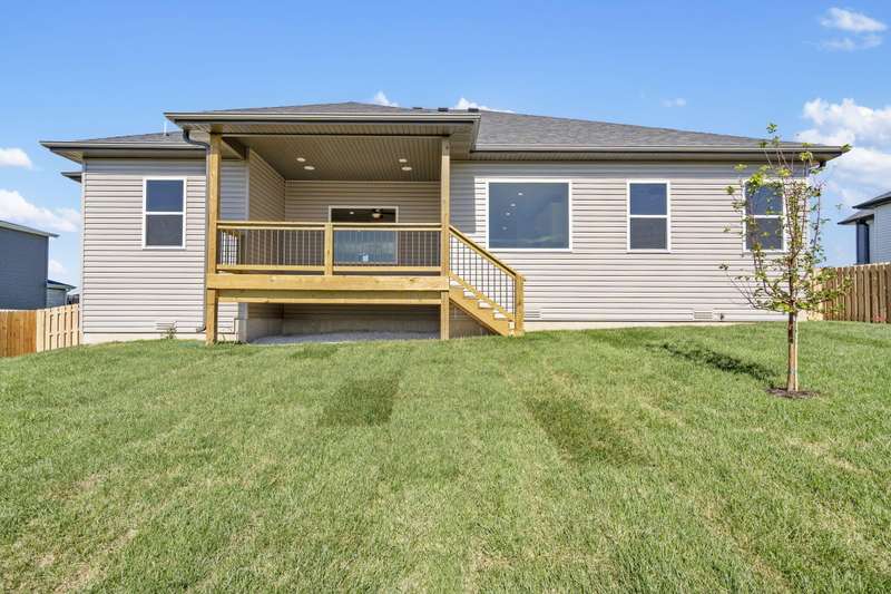Beautiful new-construction home in Eagle Springs! This gorgeous 4 bed, 2 bath, 3-car garage home sits in the sought-after Eagle Springs subdivision in Ozark. Tucked away in a welcoming neighborhood with a community outdoor pool, yet just minutes to shopping, dining, and Highway 65 for an easy commute to Springfield. Located in the Ozark School District.Inside, you'll find a comforting layout featuring luxury vinyl plank flooring throughout the main living areas, tile in the bathrooms, and plush carpet in all bedrooms for added comfort. The spacious master suite includes a walk-in shower, walk-in closet, and a beautifully finished bathroom.The heart of the home is the open-concept kitchen and living area. Featuring: granite countertops, custom cabinetry, a large island, pantry, and abundant natural light. Cozy up by the modern built-in electric fireplace in the living room and enjoy the built-in sound system.Outside, enjoy a fully fenced backyard, covered deck, and complete sod and irrigation; making this home truly move in ready.