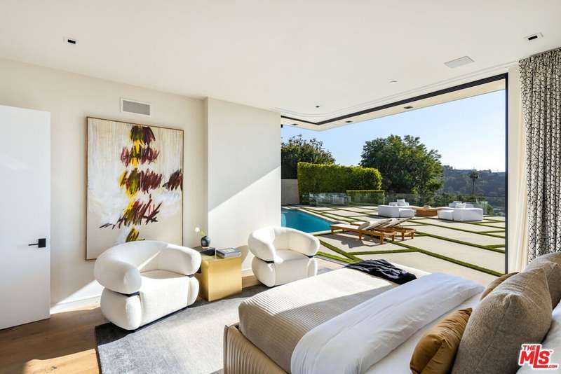 Elevated above Los Angeles, this 8,500-square-foot Brentwood estate offers sweeping, 280 degree views from the Getty Center to the shimmering lights of Downtown. Designed for both comfort and luxury, the estate features six bedrooms and eight bathrooms, including dual primary suites on both levels. Expansive 28-foot automated glass walls seamlessly connect indoor spaces to a private backyard oasis, complete with a pool, spa, and expansive deck. The gourmet kitchen boasts a massive center island, top-tier stainless steel appliances, and custom cabinetry. The lower level features space for an art gallery, expansive gymnasium, and versatile entertainment room. This residence offers a harmonious blend of modern design and perennial style, providing a serene retreat amidst the vibrant cityscape of Los Angeles.