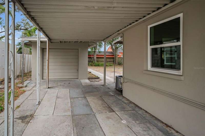 One or more photo(s) has been virtually staged. Step back in time with this Mid-Century Bungalow, perfectly nestled in the bustling heart of the City of Clearwater. Vintage, craftsman style 2 bedroom, 1 bath Florida home with authentic design elements along with an oversized, detached 1 car garage and separate storage/workshop in the convenient and desirable subdivision of Boulevard Heights. Situated in a non-flood zone, unaffected by the recent storms, yet still only minutes to downtown Clearwater, top rated Schools, restaurants, shopping and the Pinellas Beach’s making it an ideal location. This Vintage 2-bedroom home with a large, detached garage features beautiful tile flooring throughout, NEW Windows and Doors, New Interior Paint throughout, Upgraded Kitchen with wood shaker cabinets along with numerous other value-added upgrades makes for a great starter or second home and IDEAL Investment property. With No Rental Minimum Lease Period, this residence can be a wonderful money maker! Enter the home into a large, sun filled living area with classical coved ceilings and arched entry’s – enjoy the ample natural lighting. The living room is adjacent to the efficient kitchen which has been fully updated and with ample cabinet and counter space! The kitchen connects to a wonderful, sunny Family Room which is the perfect place to get away without going away! This Family room has a door to the large backyard and detached garage and storage room / workshop. Both bedrooms are generous in size and share a super clean full bath. The detached garage has a private driveway and an adjoining carport offering plenty of space for parking. Crest Lake Park is one block away with a full walking trail, lake, Playgrounds, and more and the City of Clearwater Golf Course is within walking distance. Local shops and restaurants are all within proximity. Enjoy this conveniently located neighborhood with so much to enjoy and centrally located to everything. Schedule your showing today!