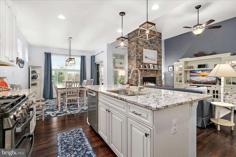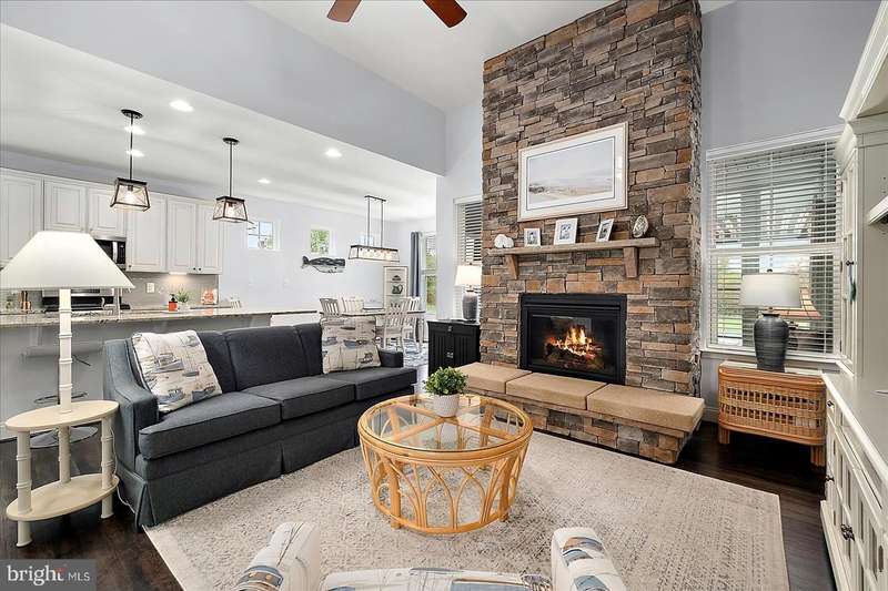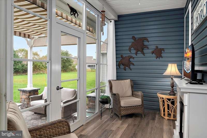 Beautiful, like new, single family home in the coveted community of Bishops Landing! Enjoy a simple lifestyle with everything all on one level. Walk into the stunning foyer with tray ceilings that opens up into the living room and kitchen. Luxury vinyl plank flooring in all living spaces paired with the floor to ceiling stone fireplace, give the home an elegant touch. The gourmet kitchen is complete with granite countertops, upgraded white kitchen cabinets with pull out drawers, beautiful glass backsplash, and stainless appliances including a new gas range with double ovens. Plenty of counter space to prepare a meal for a large gathering and the open floor plan is perfect for entertaining! The pantry provides excellent storage for food and other items. Walk out onto the enclosed porch with EZ Breeze windows to enjoy the outdoors most of the year or relax on the 16' x 18' paver patio with new vinyl pergola and retractable awning and shades to catch up with friends. This home also features a large backyard, perfect for kids, pets and lawn games! The primary suite is located off of the living room and features a tiled, walk-in shower, soaking tub, 2 sinks, and a large walk-in closet. The guest rooms are down the hall with a shared bathroom, offering your friends and family some privacy. The perfect nook to drop your keys and mail is situated right off of the 2 car garage, and the laundry room and a separate large storage closet are also in that hallway. Additional features include a tankless water heater and encapsulated crawl space. Perfectly located just steps from one of the outdoor pools, making this an ideal setup if you don't feel like hitting the beach! Enjoy the numerous community amenities including a beach shuttle, large clubhouse with fitness center, tennis and pickle ball courts, 3 outdoor pools, nature trail, playgrounds, dog parks and so much more. This home has never been rented but would make an excellent investment property!