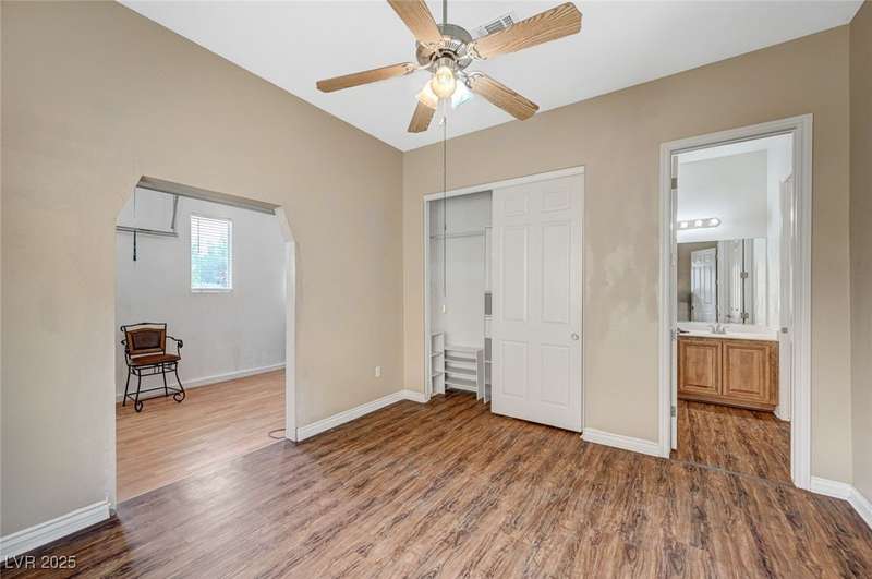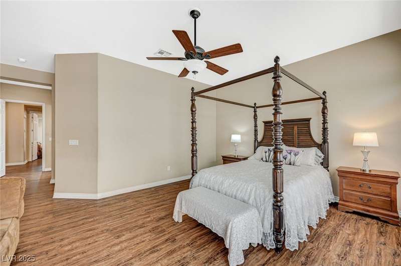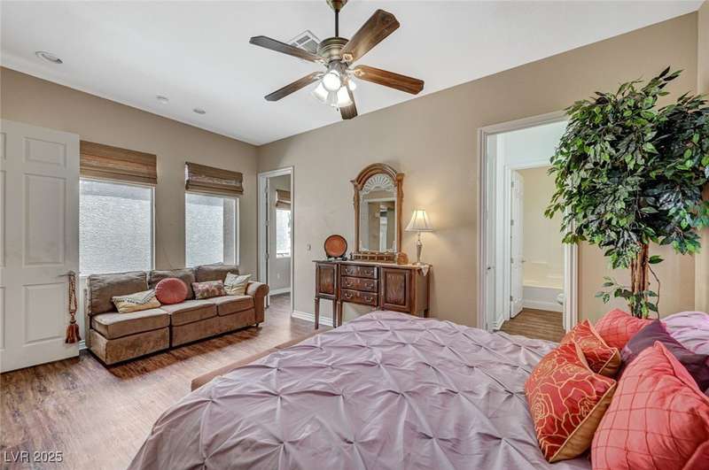 Gorgeous single story home in the beautiful Mountain Falls Golf Course community! This spacious 4 bedroom, 3 bathroom home features an open floor plan, front porch, and luxury vinyl plank flooring throughout. The kitchen boasts granite countertops, a large island, walk-in pantry, and all included appliances. Huge primary suite with TWO walk-in closets, double sinks, separate tub & shower. Second bedroom is oversized, nearly a 2nd primary. The 3rd car garage has been finished with a kitchenette increasing the living area to 2740 sq ft and has its own exterior entrance & can be closed off for an office/workshop or converted back. Ceiling fans, water treatment system, & solar panels included. Enjoy a large backyard with patio, pavers, firepit, and side yard perfect for a dog runway. Fabulous clubhouse offers a restaurant, pools, spa, fitness center, and events—all beside a lush 14-hole golf course! Only 1 hour from the Las Vegas International Airport and the city. Must see this home!