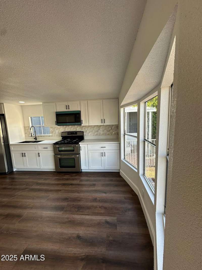 Step into this beautifully renovated manufactured home, perfectly situated on a spacious corner lot. Inside, you'll find brand-new vinyl flooring, a modern kitchen with white cabinets, stainless steel appliances, and a stylish tile backsplash. The bathroom features a new vanity and an elegant tile shower. Enjoy year-round comfort with two new mini-split systems in the living room and primary bedroom, plus a wall unit in the second bedroom. Move-in ready with fresh, modern updates throughout!