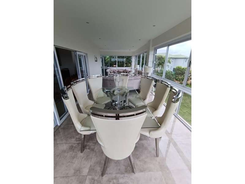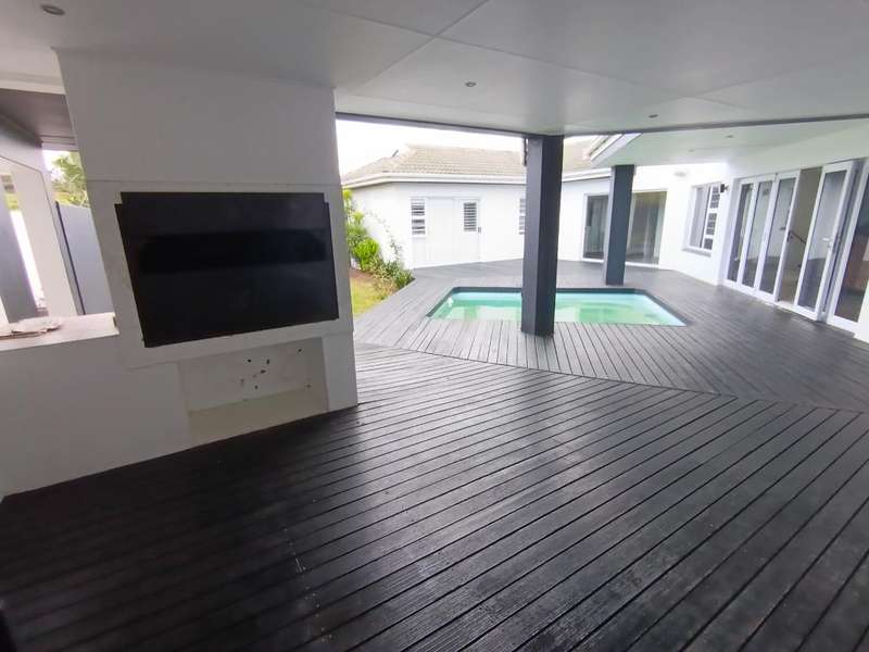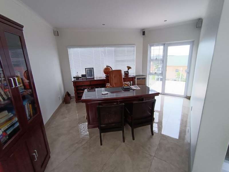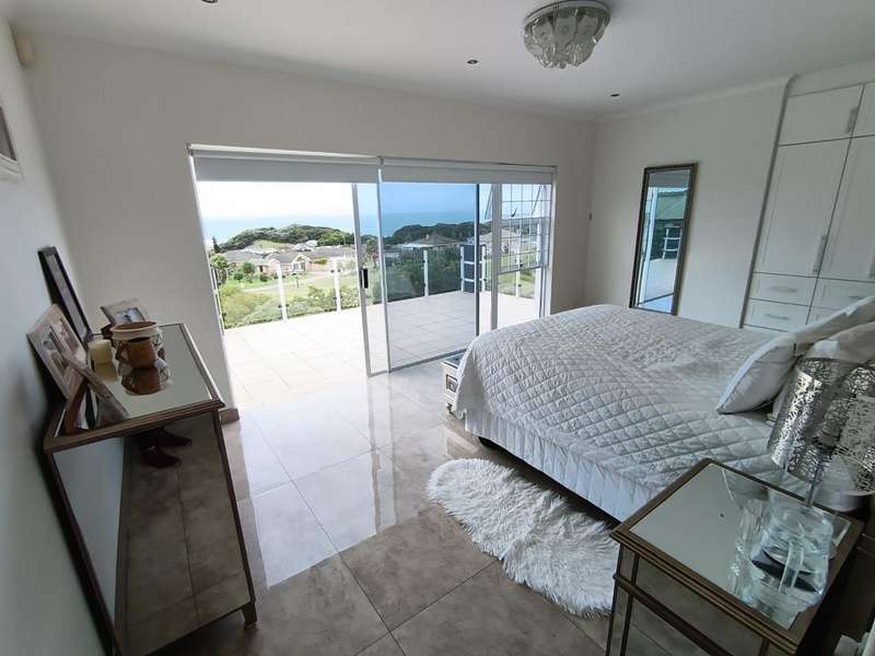 Elegant 5 bedroom house in Glen Eden with magnificent sea views and beach access. Nestled within the esteemed New Four Seasons enclave of the East Coast Resorts in Glen Eden, this luxurious five-bedroom residence offers an unparalleled blend of elegance, comfort, and natural beauty. Designed to harmoniously integrate with its stunning coastal surroundings, the property provides discerning homeowners with a serene retreat that boasts breathtaking sea views and direct access to a private beach. Upon arrival, the home's sophisticated facade, characterized by clean lines and expansive glass panels, immediately captures attention. It enhances the aesthetic appeal but also ensures the residence complements its coastal environment. The thoughtfully designed landscape features indigenous flora, creating a seamless transition between the built environment and the natural landscape. Stepping through the grand entrance, one is greeted by an expansive open-plan living area that exudes a sense of space and light. Floor-to-ceiling windows frame panoramic ocean vistas, allowing natural light to flood the interior spaces throughout the day. The neutral color palette, accented by soft blues and greens, mirrors the hues of the surrounding seascape, creating a calming and cohesive atmosphere. The state-of-the-art kitchen, equipped with top-of-the-line appliances and sleek cabinetry, flows effortlessly into both formal and informal dining areas, making it ideal for entertaining guests or enjoying intimate family meals. Adjacent to the kitchen is a cozy lounge area, complete with a modern fireplace, offering a perfect spot to unwind while gazing at the ocean. Each of the five bedrooms has been meticulously designed to serve as a private sanctuary. The master suite, a true highlight of the home, features a spacious layout that includes a sitting area, walk-in closet, and a luxurious en-suite bathroom with an outside kitchenette for convenience. The remaining four bedrooms, all generously proportioned, 1 comes with its own en-suite and ample closet space, ensuring comfort and privacy for all residents and guests. The exterior of the property is equally impressive, offering a private oasis for relaxation and recreation. The centerpiece is a sleek splash pool, perfect for cooling off on warm summer days or enjoying a refreshing swim under the stars. Surrounding the pool is a spacious deck area, ideal for sunbathing, alfresco dining, or simply taking in the mesmerizing ocean views. Lush landscaping and strategically placed lighting enhance the ambiance, creating an inviting space for both day and evening enjoyment. Located within the prestigious New Four Seasons community, residents benefit from a range of exclusive amenities, including a clubhouse, tennis courts, and walking trails. The East Coast Resorts area of Amathola is renowned for its unspoiled beaches, vibrant marine life, and recreational opportunities, making it a sought-after destination.