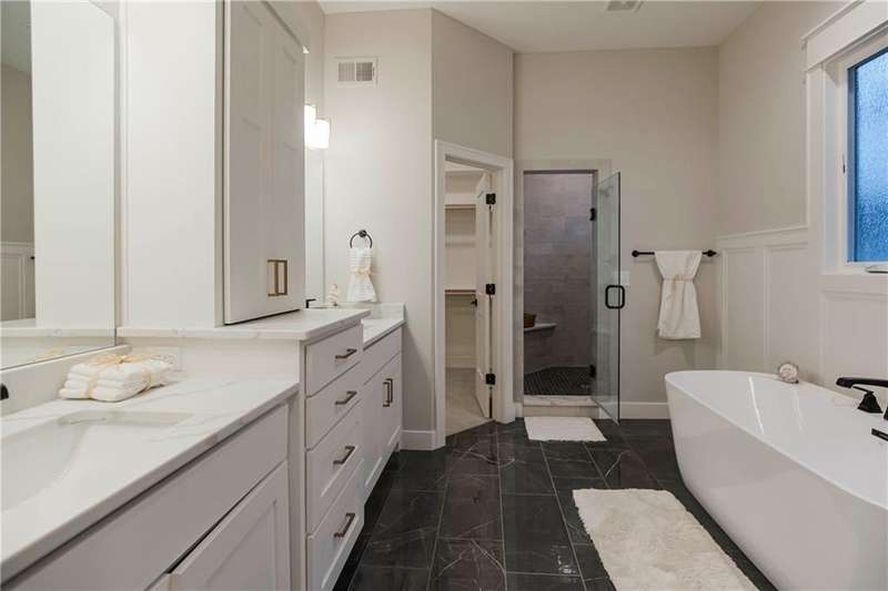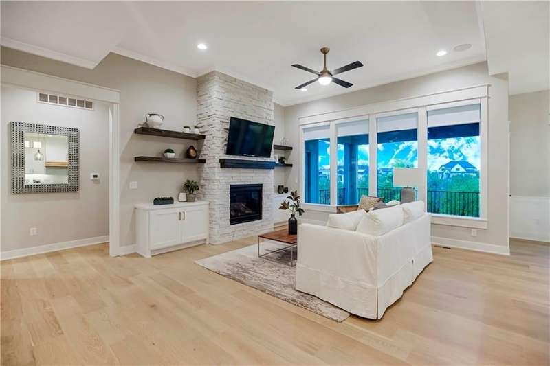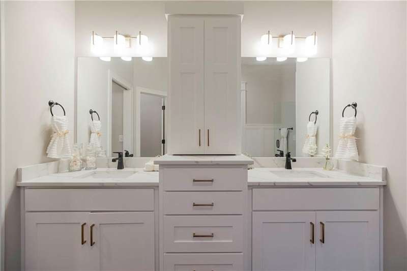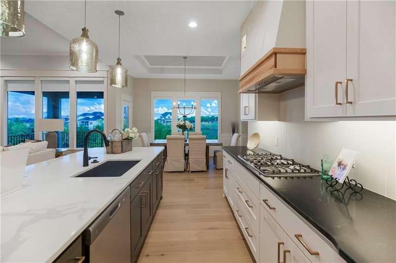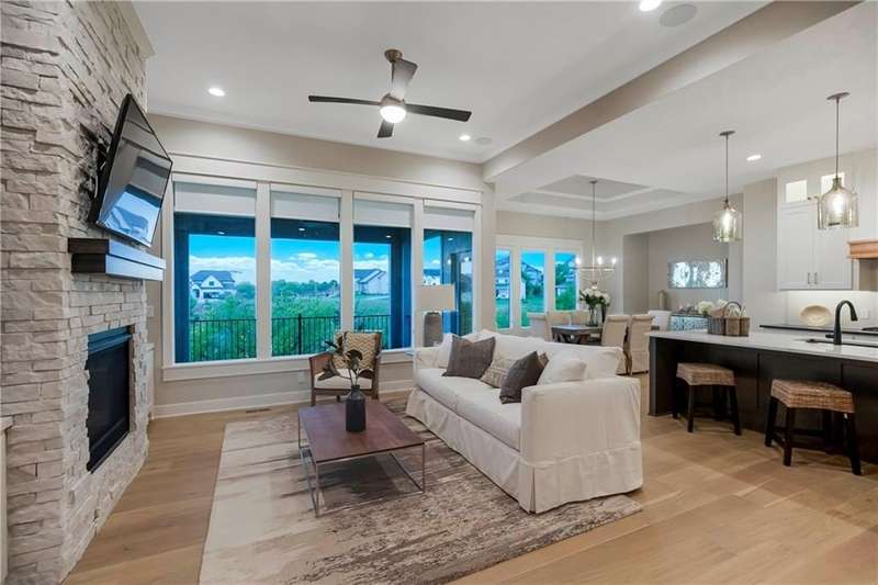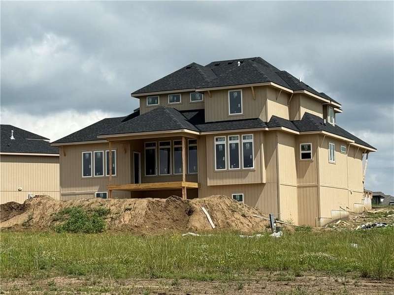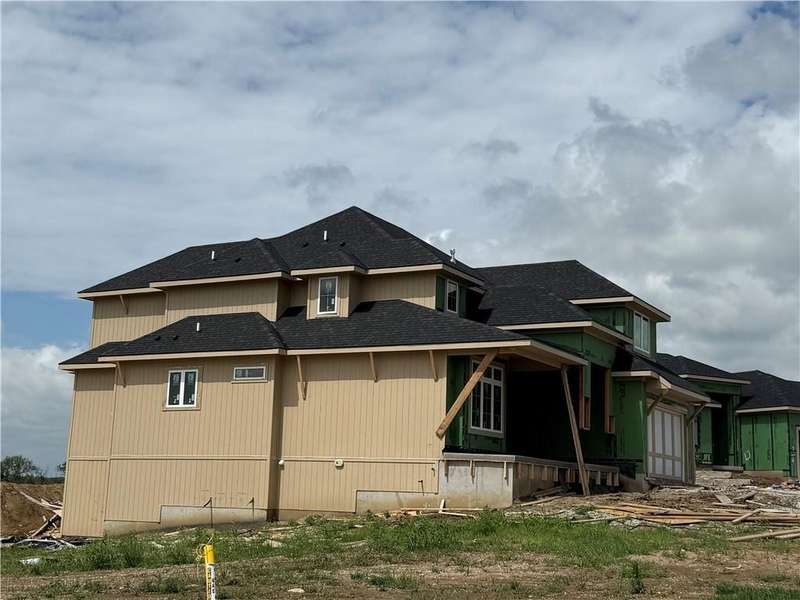 Located on Lot 89, prepare to be wowed by The Santa Barbara plan- one of Hilmann Home Building's newest 1 1/5 Story plans- offering a daylight lot on a cul-de-sac, 5 bedrooms and 5 baths. The open main floor living features a great room with hardwood and vaulted ceiling, floor-to-ceiling fireplace, and a view to the outdoor covered living area, great for entertaining. The kitchen features beautifully designed cabinetry with a large island and granite countertops. The huge walk-in pantry / optional prep kitchen provides ample storage. The fabulous primary bath has everything you need including a large vanity space, walk-in shower, free standing soaker tub and TWO large walk-in closets. The primary bedroom has a convenient door leading to the covered porch. The main floor laundry boasts a utility sink with cabinetry and access from the main living area and the master bedroom closet. The 5th bedroom on the main floor can also serve as an office or study with access to a full bath. Each bedroom throughout includes its own bath and walk-in closet. 2nd floor features a spacious loft with fireplace. Additional laundry hook-ups on the second floor for convenience Photos include a rendering of the model and photographs of a former Santa Barbara model, finishes on Lot 89 may vary. Any additional photos show the current state of the actual home on lot 89. Taxes are estimated. Don't miss this opportunity to own a beautifully crafted home in a fabulous neighborhood- minutes from our K-12 schools, highways, shops and restaurants. Models Open Daily, 11 am – 5pm, and Sunday, 12-5pm. Visit the sales office at 12407 W 183rd Terrace, Overland Park. ***ESTIMATED COMPLETION is mid-October 2025.