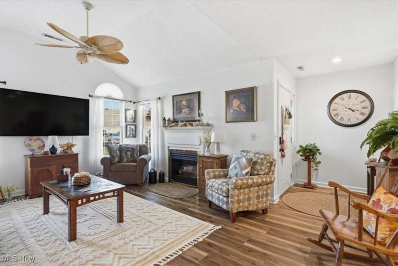 Maintenance free living in this two bedroom, two bathroom updated ranch condo. Tannybrooke condo development is a hidden gem in a tucked away location in the heart of the Belden Village area. Begin your visit in the courtyard style patio entrance. A welcoming foyer entry opens to the great room that offers cathedral ceilings, a gas fireplace and an arched window allowing an abundance of natural light. The tidy kitchen with corian counters, plenty of cabinets, and access to the first floor laundry. An owner's suite features a full bathroom suite and a walk-in closet. The second bedroom and a second full bathroom complete the living space. Updates include new flooring and freshly painted through out, new bathroom vanities sinks, faucets, commodes, medicine cabinets and mirrors. Newer closet doors in primary bathroom and second bathroom. New door into the garage, new keyless locks. New smoke/carbon dioxide detectors. The air conditioning was new in the fall of 2023. Air duct cleaning was done about one year ago.