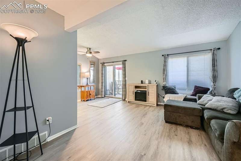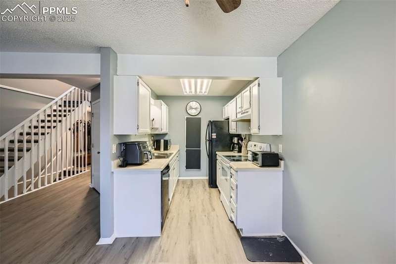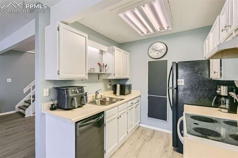 This beautifully renovated two-story townhome blends modern elegance with everyday comfort. The main living area features stylish LVP flooring, creating a seamless and sophisticated look, while freshly painted walls, doors, and trim enhance its bright, inviting ambiance. A stunning wood staircase leads upstairs, where plush brand-new carpeting adds warmth throughout.The well-appointed kitchen comes fully equipped with appliances and seamlessly connects to a charming dining area that opens onto a private composite wood patio—ideal for outdoor gatherings and barbeques. Upstairs, you'll find two spacious bedrooms, including a primary ensuite with a walk-in closet, along with a versatile loft that works perfectly as an office or playroom. A full bathroom and a convenient laundry closet with an included washer and dryer complete the upper level. Additional highlights include updated vinyl windows, a walk-out finished basement with three distinct living areas, and a one-car attached garage with an automatic opener plus extra storage space. Also includes some of the furnishings-Main lvl sectional couch, TV stand, end table and lamp; basement 65-inch flat screen with wall mount, electric massage rocker recliner, loveseat; loft desk and chair; upper lvl queen bed 2 nightstands and the electric fireplace. With thoughtful upgrades throughout, this move-in-ready townhome is a rare gem—don't miss the opportunity to make it yours!