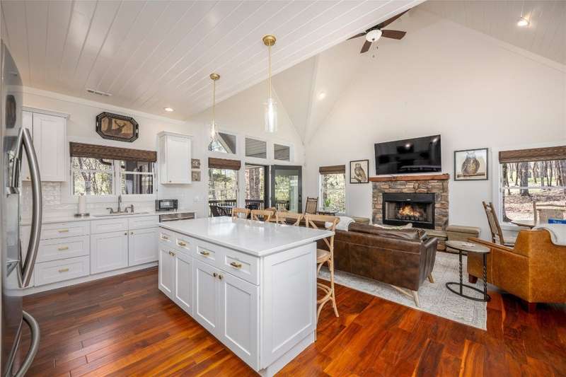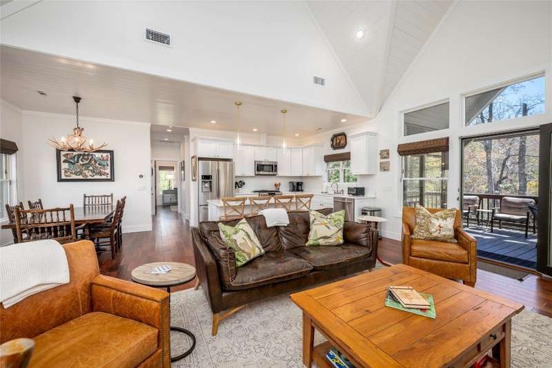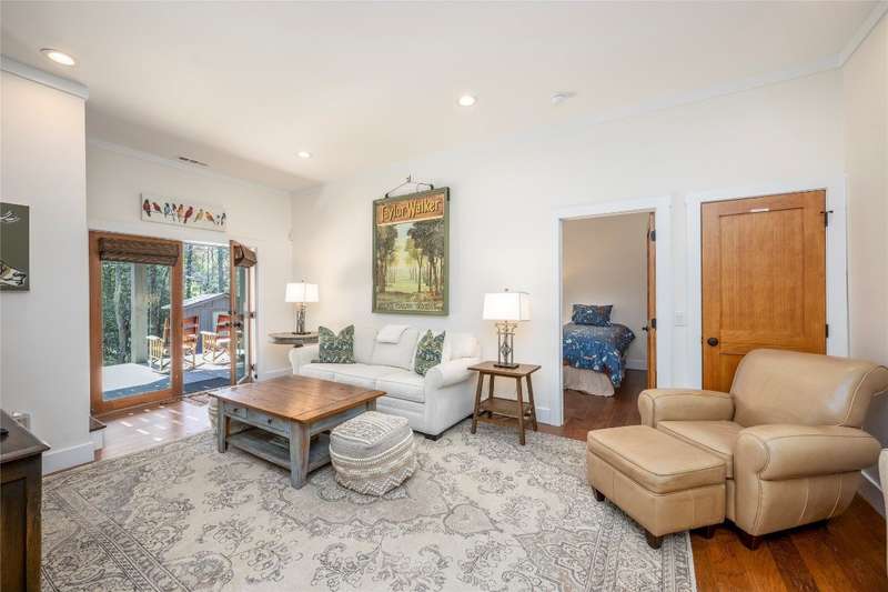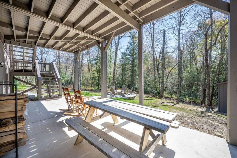 Discover the perfect blend of comfort and mountain living in this meticulously maintained home. Boasting an open floor plan, the main level is ideal for both everyday living and entertaining. The living room features a stone fireplace, perfect for gathering on cool evenings. Step out onto the expansive screened porch or enjoy the nearby fire pit for outdoor relaxation. The main level includes the dining room, kitchen, and laundry room, along with the primary suite, offering convenience and privacy. The lower level enhances the home's functionality with a family room that includes a wet bar, two guest bedrooms, and an additional porch, creating a versatile space suitable for either hosting or quiet retreats. Located in the gated Natures Walk section of Chinquapin, this home is within close proximity to the community clubhouse, which features a fitness center, pickleball courts, a driving range, disc golf, and a dog park. Outdoor enthusiasts will benefit from Chinquapin's 2000 acres of private land, known for its opportunities for hiking, biking, fishing, and canoeing, and nearby Panthertown Valley, which is only a mile away. A short path from the property leads directly to the peaceful Tulip Pond. Whether intended as a year-round residence, seasonal retreat, or rental property, this move-in-ready home allows for an immediate start to enjoy mountain living.