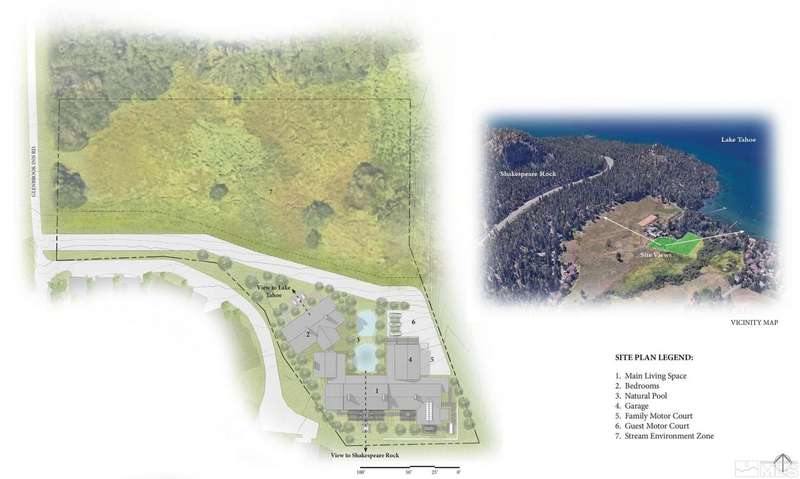 Introducing Shakespeare Meadows....a once-in-a-lifetime building homesite opportunity behind the private gates of the Shakespeare Ranch in historic Glenbrook, NV. Unparalleled beauty and serenity from this extraordinary 3-acre lot offering breathtaking views of Shakespeare Rock, the tranquil meadow, and the crystal blue waters of Lake Tahoe. Conceptual designs by a renowned architect Backen and Backen, ample coverage for building, pier access rights and use of a buoy are included., Imagine waking up to the morning sun illuminating Shakespeare Rock, with the tranquil meadow and sparkling lake as your backdrop. Whether you're looking to build a luxurious estate or a cozy retreat, this lot offers the perfect blend of natural beauty and privacy within the prestigious community of Glenbrook. A lot line adjustment is underway for a minimum of three acres with a minimum of 1.6 acres of building envelope. The address, accessor parcel number, taxes and exact parcel size will be determined upon final county approval. Ample coverage to build your dream home. Experience the beauty, tranquility, history, charm, and exclusivity of Glenbrook, NV. This is more than just a property; it's a lifestyle. Take advantage of this rare opportunity to own a piece of paradise.