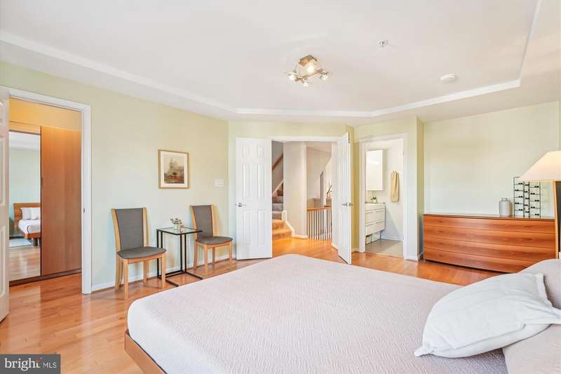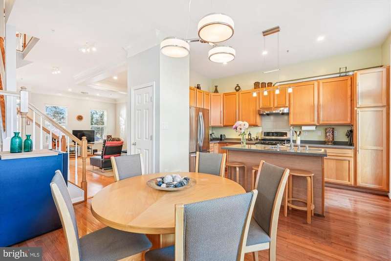 Experience this contemporary end-unit townhome in the sought-after Lakelands community. Located on a quiet residential street just a few blocks from the Kentlands-offering an abundance of dining, shopping, and entertainment venues. 422 Chestnut Hill Street features 2,052 total square feet of all above-ground living space, including 3 bedrooms, 2 full baths, and a powder room. Design highlights and upgrades include a newly renovated owner's bath with high-end finishes, walk-in closets in all bedrooms, lounge/office space on both upper levels, a gourmet eat-in kitchen, hardwood floors, high ceilings, recessed lighting, a private flagstone patio, and a detached 2-car garage. Step inside to an open living and dining room accented by crown molding and a tray ceiling. The kitchen boasts stainless steel appliances, a gas range with hood, modern cabinetry, an oversized workstation sink, a center island with breakfast bar, and a glass door opening to the patio and detached garage. The kitchen flows into a breakfast area/sitting room. A centrally located powder room adds convenience to the main level. Upper level 1 showcases hardwood floors throughout. The expansive owner's suite includes two walk-in closets, and the luxurious en-suite bath features contemporary tilework, a dual vanity, a glass-enclosed shower, and a soaking tub. A laundry room and a versatile loft -perfect for an office or fitness space -complete this level. Upper level 2 provides two additional bedrooms, each with its own walk-in closet and vanity, joined by a connecting Jack and Jill bath. This level also includes a cozy lounge area. The flagstone patio offers ample space for outdoor dining and entertaining, and provides access from the detached garage to the main living area. Residents of Lakelands enjoy a wealth of community amenities, including a pool, tennis, clubhouse, fitness center, walking paths, tot lot, and more. With a prime location near parks, dining, shopping, and entertainment-and convenient access to major commuter routes and the Shady Grove Metro-this home offers the best of comfort and convenience in one of Montgomery County's most desirable communities.