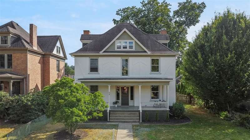 Step onto one of Crafton's most charming historic streets and fall in love with this big brick Victorian beauty on a level, fenced lot. Original woodwork, pocket doors, and built-in cabinetry blend seamlessly with fresh updates. The center hall entry opens to light-filled rooms with refinished hardwood floors on the main level, new carpet upstairs, and fresh paint inside and out. The brand-new kitchen features new cabinets, counters, a stylish coffee bar, and updated lighting. Other improvements include new windows, a waterproofed basement, and modern fixtures throughout. Relax on the large front porch, entertain in the fenced backyard, and enjoy the convenience of living on a quiet, walkable street just minutes from the city. A rare mix of history, charm, and move-in-ready updates!