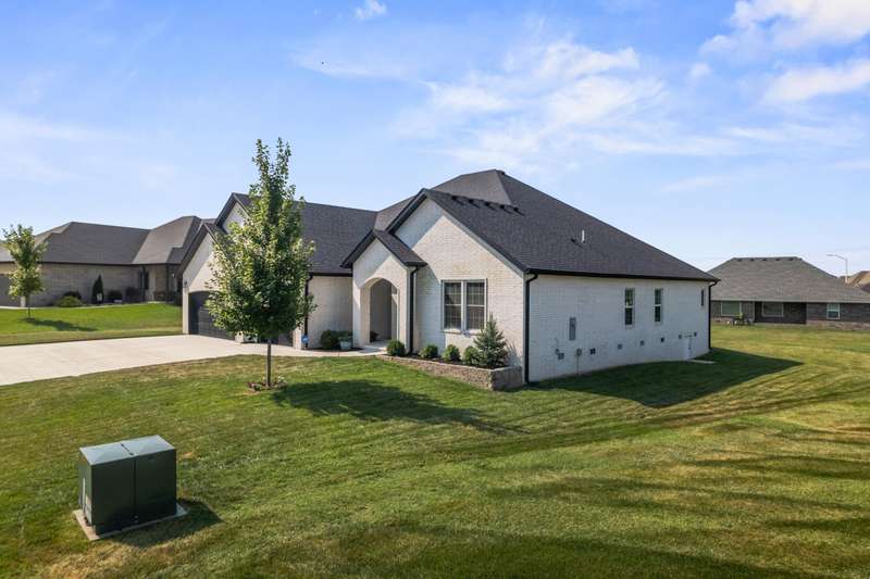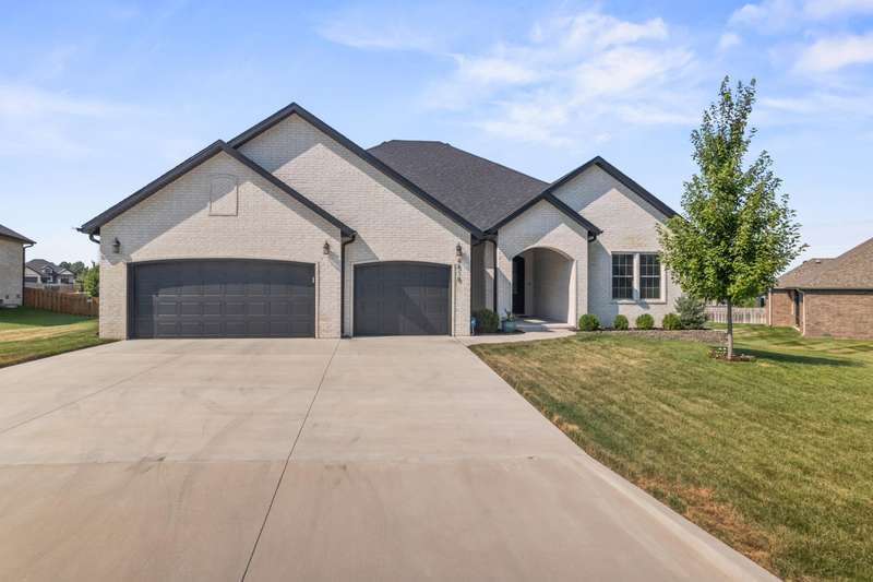 4818 E. Silverado Springfield, MO. Come see the Beautiful like new, all brick home, that is only 3 years old and has a great floor plan with so much to offer! As you enter the front porch you will notice the elegant custom made front door and the custom feel as you step inside the home. Once inside you will see the tall ceilings and spacious living areas. This home has over 2,600 sqft. all on one level with all hardwood floors and has an open floor plan that is open to the living room kitchen and dining area. The living room has a gas fireplace with a blower. The elegant kitchen has quartz counter tops with a center island and a gas cooktop plus there is a walk in pantry. The primary suite is large and also has a good sized on suite with a walk in shower and soaking tub! There is also 3 more bedrooms and 2 full bathrooms plus an office. The home also features a large 3 car garage perfect for 3 cars and storage! The home sits on a flat lot and the backyard is open with a covered patio, plus there is a gas line for your grill!Located in the great East side neighborhood of The Lakes at Wild Horse. There are so many amenities like 2 pools, a hot tub, 2 playgrounds, tennis court, pickleball court, sand volleyball and a basketball court, walking trail and ponds you can fish out of plus there a food trucks at the pool parking lot in Summer.Also, only minutes to HWY 65 and Costco & Menards. Come see this home today before it is too late!