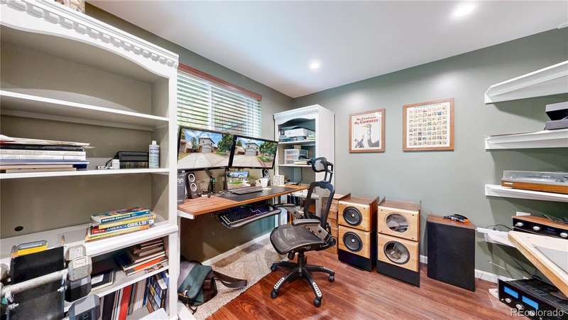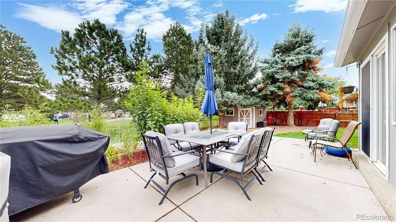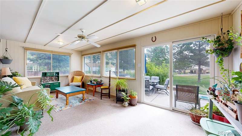 Opportunity is back! - Buyer got cold feet. Gorgeous, completely remodeled contemporary tri-level with a fully finished basement, this single-family home offers the perfect blend of modern updates and everyday comfort. Featuring 4 bedrooms (all on the upper level), 3 bathrooms, and a 2-car attached garage, the open floor plan flows seamlessly with wood floors on the main level, fresh paint, and abundant natural light. The bedrooms are comfortably sized, with the primary bedroom offering an en-suite bathroom for added privacy.Recent upgrades include an owned solar system for energy efficiency, a beautifully finished basement with full wet bar, surround sound system, private office, and spacious laundry/storage room, plus a freshly painted exterior. The kitchen showcases maple cabinets and granite countertops, while the cozy family room features a wood-burning fireplace and access to the enclosed sunroom patio.The lot provides great outdoor living potential, with a fenced backyard offering space for gardening, barbecues, or simply soaking up Colorado sunshineperfect for creating your own private retreat. Professionally landscaped grounds back directly to Hilltop Park, with convenient access to shopping, restaurants, and more. Truly move-in ready!
