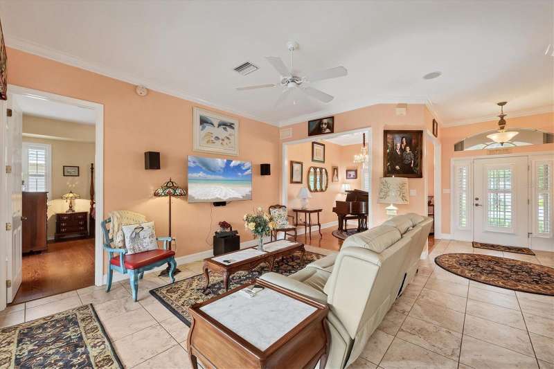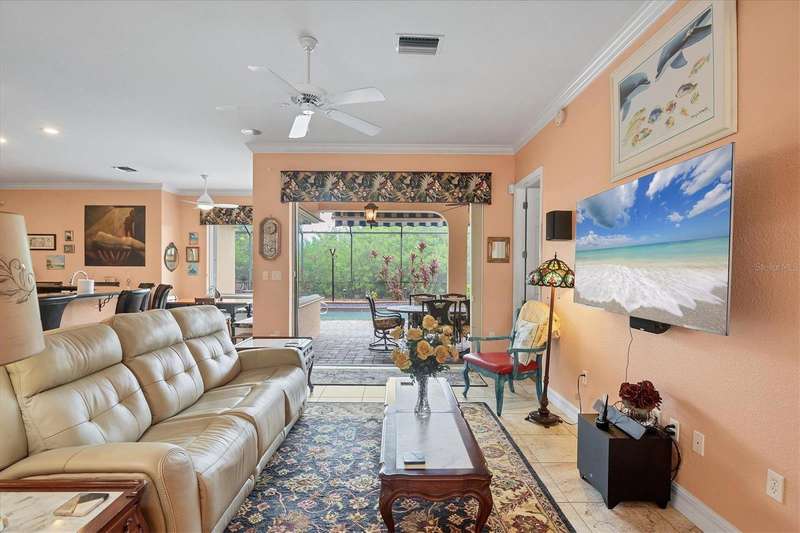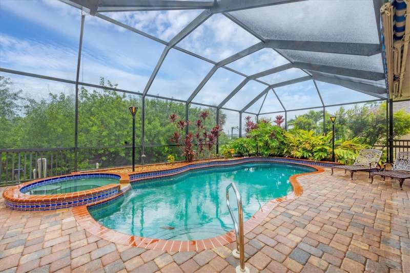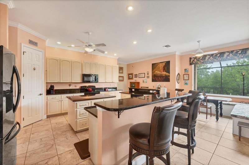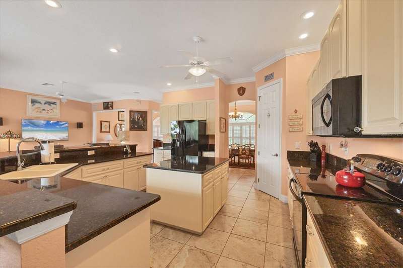 INTRODUCING - Meticulously and continuously maintained, 4-bedroom and 4-bathroom custom home, located in popular Rotonda West, Florida, surrounded by GOLF and a 15-minute ride to the sparkling blue water of the GULF. The kitchen and the pool area are immense, and the heart of this home. The kitchen takes center stage, at 15 x 19, with both an island and a large breakfast bar that offers seating for six. It features granite counter tops, a step-in pantry, and cabinets galore! It also offers a perfect eating area with a picturesque aquarium window, built-in cedar benches for storage, and custom window treatments. The back yard is a perfect, private sanctuary with an expansive screened pool area. The spacious lanai has a built-in grill area, gas fire pit and gas lamp posts, creating an elegant and unique effect. Tropical foliage surrounds you in the heated saltwater pool and spa. The whimsy striped, remote awning (with led lighting) offers extra shade when needed. The pool area also offers its own full bath with walk-in shower! Two of the four bedrooms are master ensuites with soaking tub, separate showers, and dual vanities. 2 additional bedrooms, a separate dining room, front parlor, family room, interior laundry room (with shelving, utility sink and closet) make this a perfect home for your family, guests or an investor. The home has been professionally landscaped with outdoor lighting, has a new roof, an irrigation system that uses both well and public water (well water on the grass and public water near the home and driveway to keep it clean), a 2-year old whole home generator, clear and accordion hurricane shutters, gutter guards, two young AC systems, sliding and french doors, plantation blinds, and a two car garage with a large, level driveway that fits 4 cars. This home easily sleeps 8 people and has plenty of roaming space both inside and out. It has been loved and enjoyed and is looking for its new owner. If you love a spacious kitchen and you love a gorgeous outdoor space, this home is a MUST-SEE.