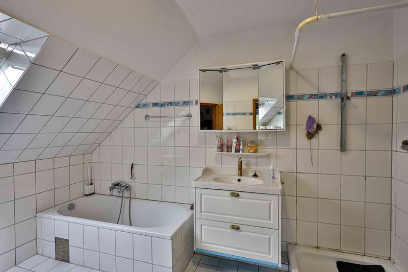 This well-kept two-family house built in 1993 offers two well-designed residential units with solid furnishings and rented units on a total living space of approx. 179 m² - an attractive opportunity for investors. The first floor apartment has around 98.6 m² of living space. It comprises a kitchen, a large bathroom, two bedrooms, a living room and a storage room. A sunny terrace invites you to linger outside. The unit is complemented by a low-maintenance garden that offers a variety of uses. A separate external staircase leads to the second residential unit on the upper and top floor. The approx. 80 m² space includes a kitchen, a full bathroom, three bedrooms, a guest WC and a converted loft. A shed and a carport are assigned to this unit and round off the offer. The current annual net cold rent amounts to approx. 16,200 €. The basic rent for the first floor is € 700 (€ 900 incl. ancillary costs) and € 650 (€ 950 incl. ancillary costs incl. parking space (€ 120)) for the upper floor. The property is in a well-kept condition. The gas heating was renewed in 2017. The floors are fitted with tiles, laminate and carpet. The windows are double-glazed and date from the year of construction. A solid investment property with stable tenancies and good fixtures and fittings.