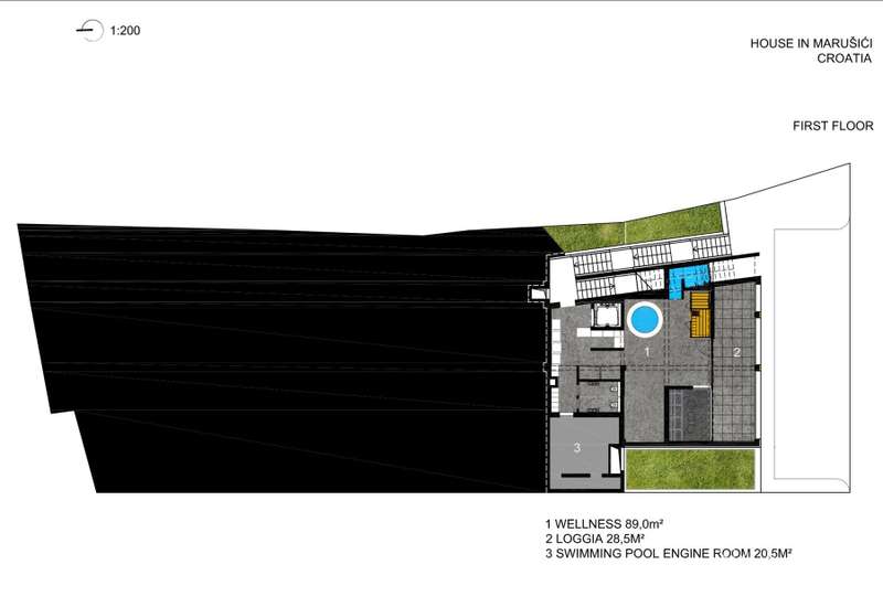Villa Maestral - ground floor + 2 floors + rooftop terrace - residential area 298 m2 (4 bedrooms + 3 bathrooms + 7 terraces + wellness area + gym + pool + rooftop terrace) + 8 parking spaces = €1,900,000