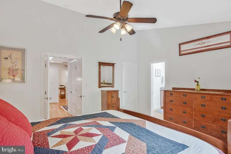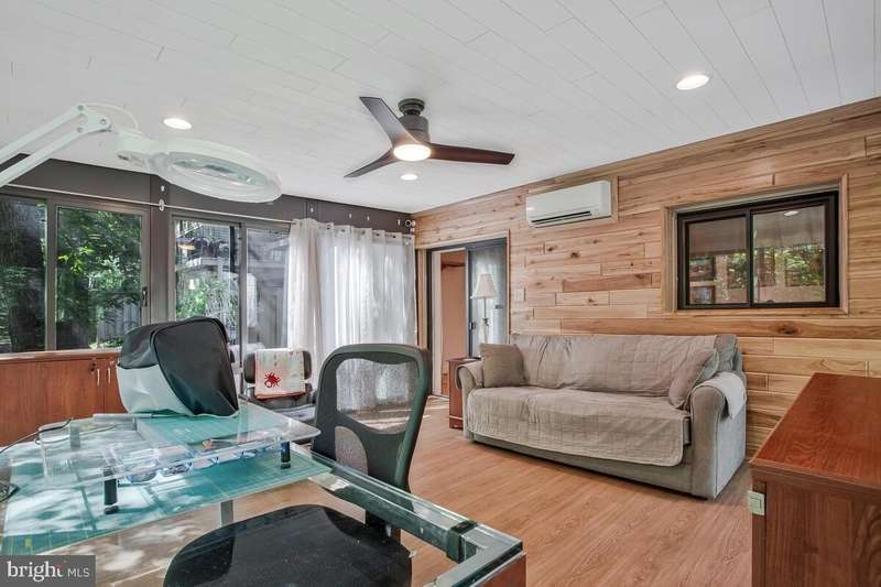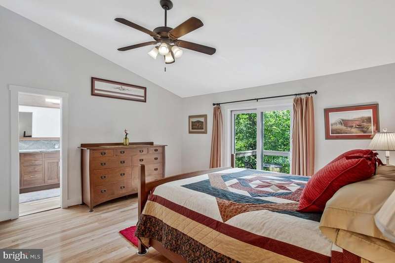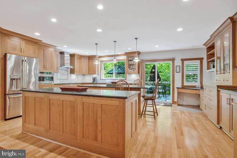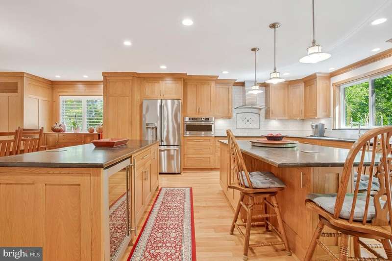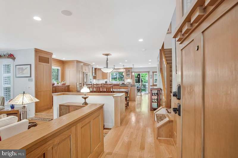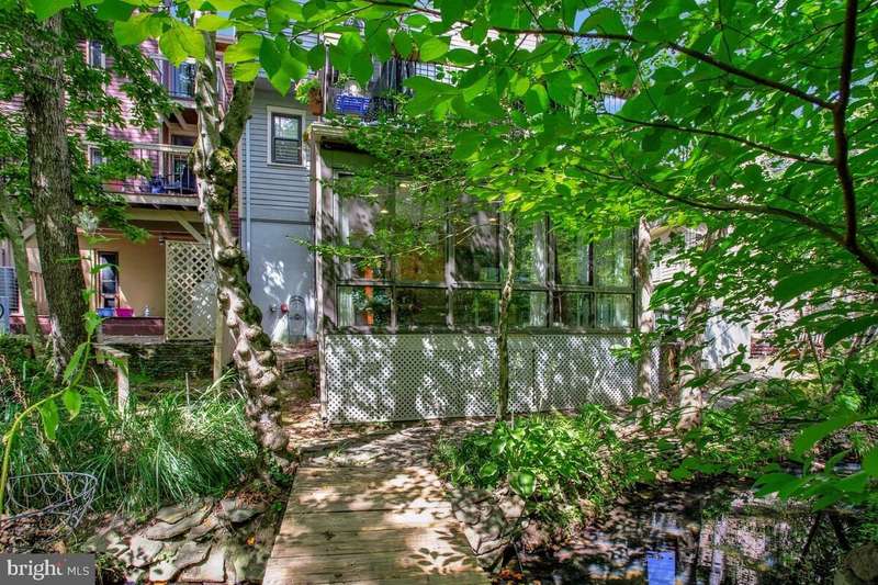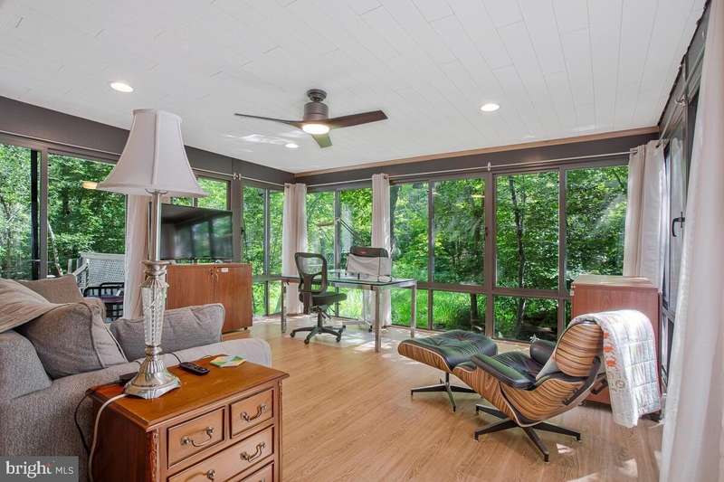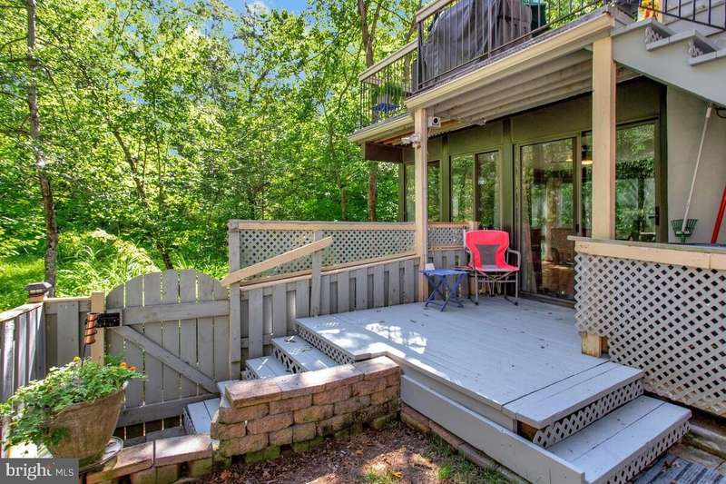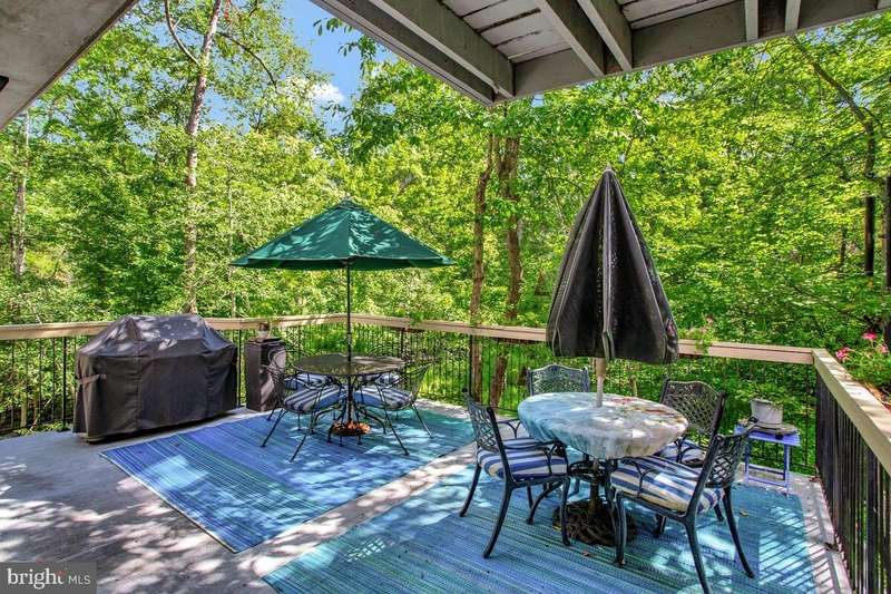 Discover the perfect blend of luxury and comfort in this beautifully appointed end-unit townhome featuring 3 bedrooms and 3.5 baths. The open-concept main floor showcases oak hardwood floors, a cozy step-down living room with a propane fireplace, and a chef-inspired kitchen with custom soft-close cabinetry, soapstone counters, dual center islands, and top-of-the-line GE appliances. An oversized kitchen window frames serene, wooded views, adding to the home's tranquil charm. The spacious primary suite boasts a vaulted ceiling, two walk-in closets, and a spa-like bath with a walnut vanity with double sinks and soapstone countertop. The second bedroom enjoys private access to a full bath, while the lower level offers a versatile family room with a second propane fireplace, full bath, and convenient laundry. Relax year-round in the 3-season room or unwind on the deck listening to the peaceful sounds of the nearby waterfall feature. A fenced side yard is great for pets and gardening. 1 covered parking spot as well as one in front of the unit. Convenient access to community amenities-including walking trails, an observation tower looking out over the Little Magothy River, tennis courts, playground, dog park, and boat storage-make this a rare and exceptional offering.