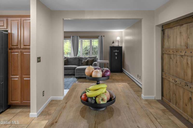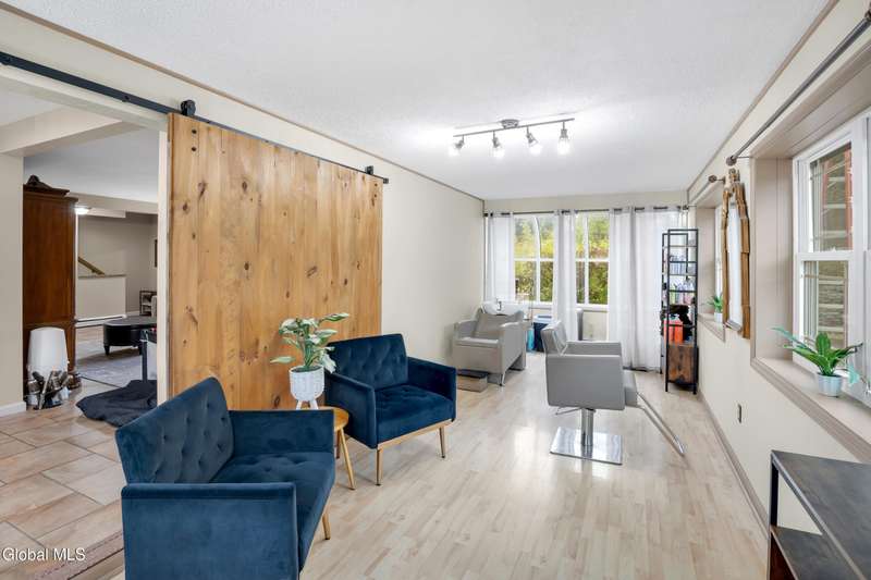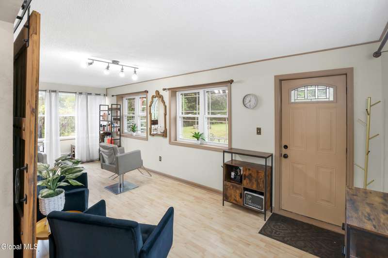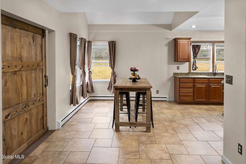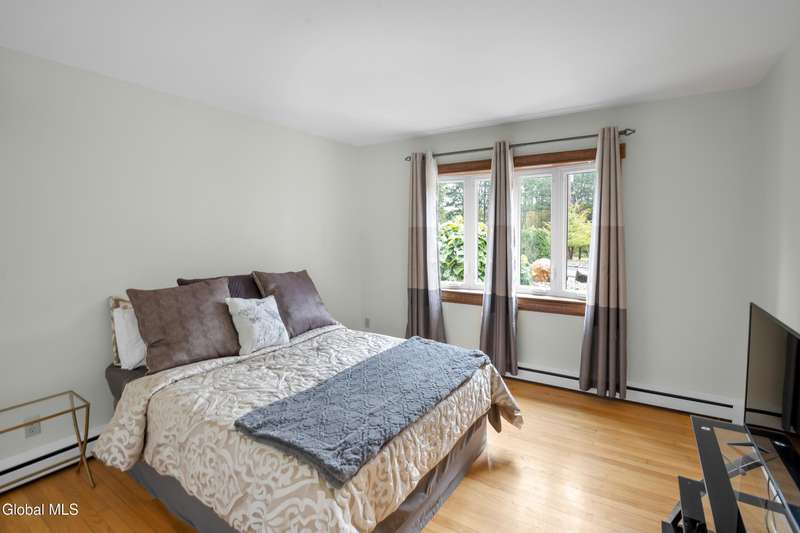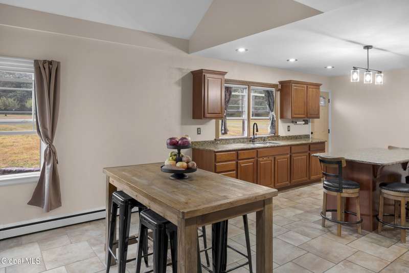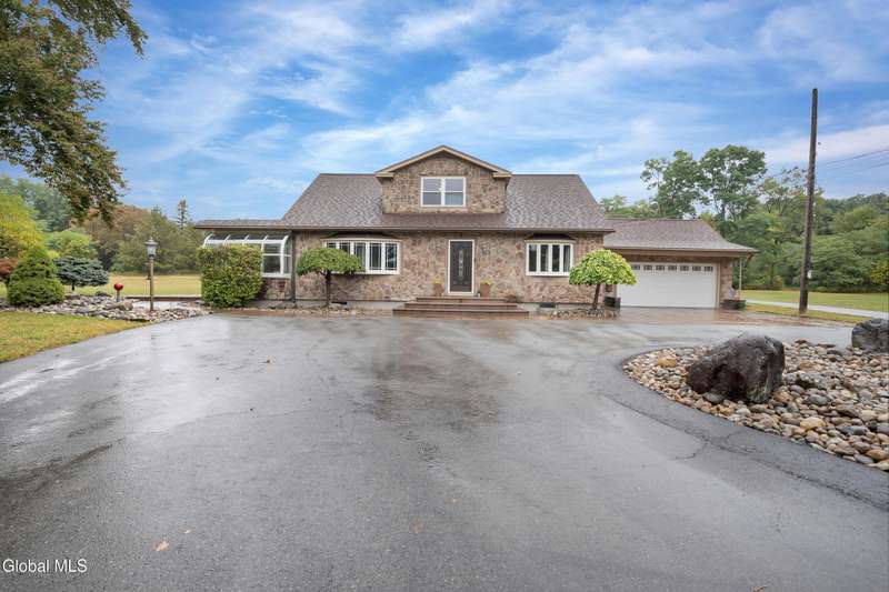 Charming expansive 5 bedroom, 2 bath home in Altamont -in the Guilderland school district. Set on 3.22 serene acres, this beautifully updated Cape blends timeless charm with modern living. Step inside to find a bright, open floor plan designed for today's lifestyle. The spacious living room flows seamlessly into the updated kitchen, perfect for everyday living and entertaining. The first floor features a versatile layout with a large bedroom, home office, and a full bath, making it ideal for guests or single-level living. A sunroom addition with a private entrance offers endless possibilities-perfect for a home office, studio, or small business.Upstairs, discover four generously sized bedrooms and another full bath, providing plenty of space for everyone. Additional highlights include: 2-car heated garage with radiant heat, Stamped concrete patio and convenient circular driveway. Peaceful acreage offering privacy and room to roam -just minutes to village amenities, parks, and commuting routes. Seller is relocating and motivated to entertain offers.