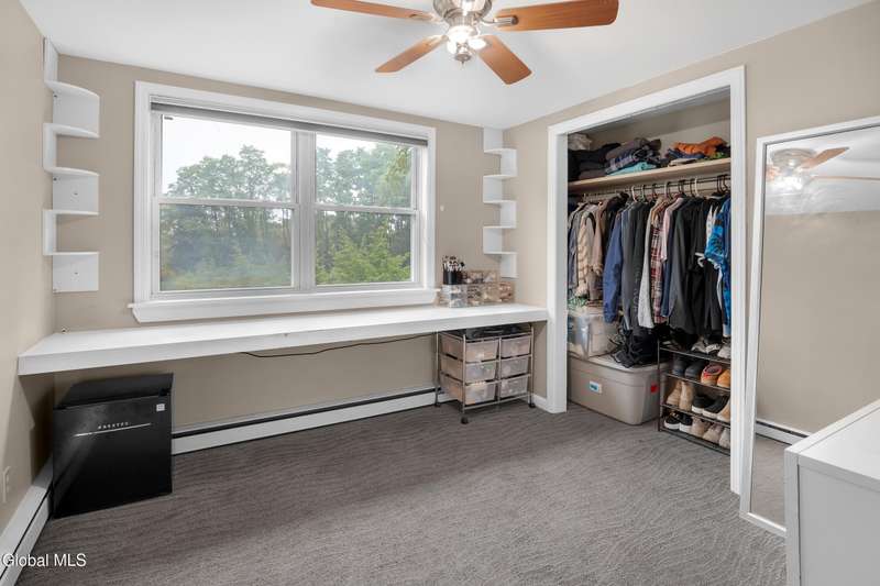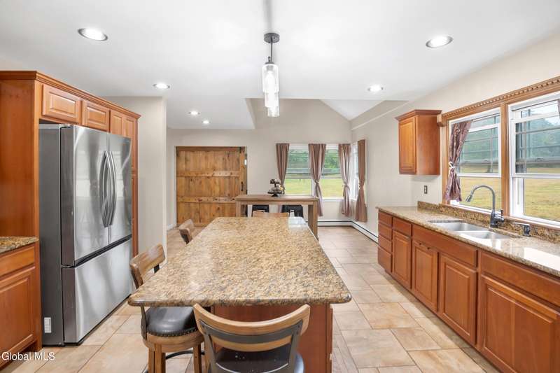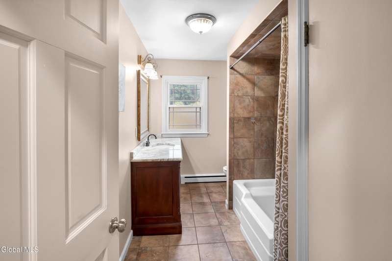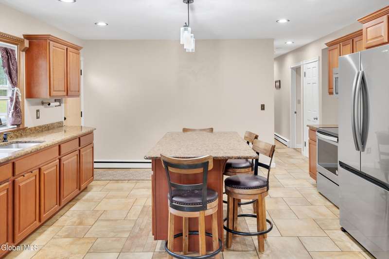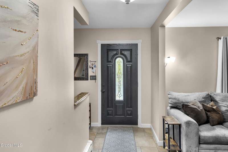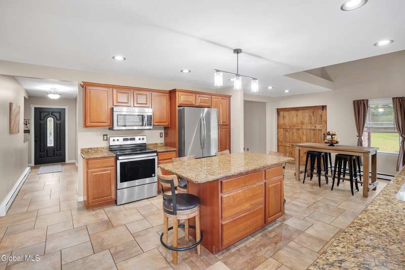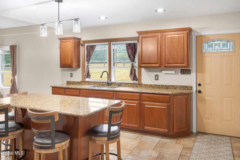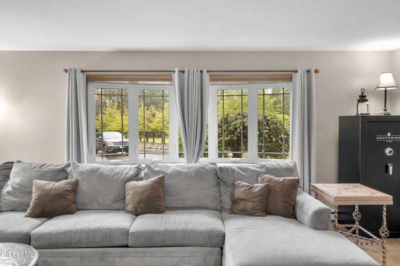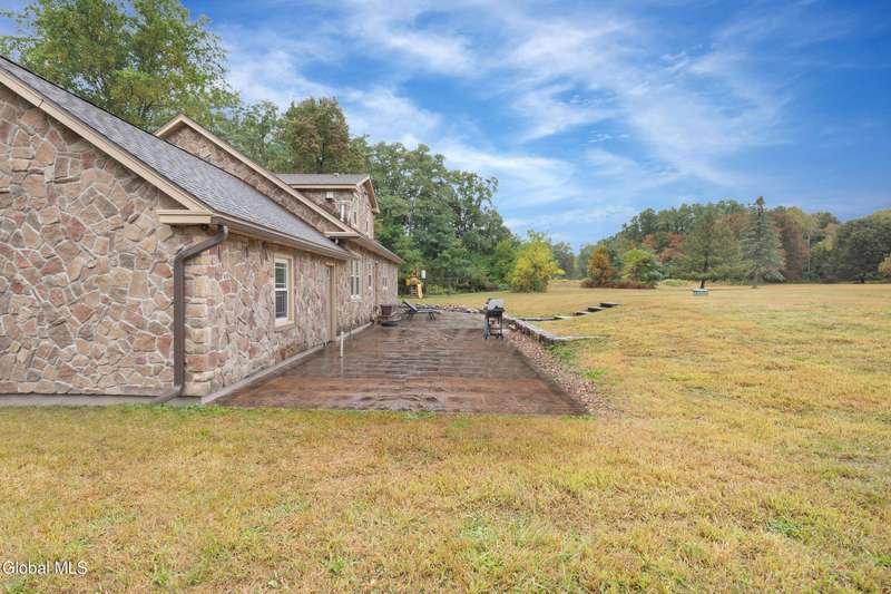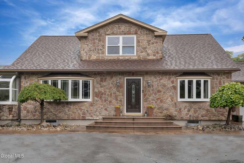 Charming expansive 5 bedroom, 2 bath home in Altamont -in the Guilderland school district. Set on 3.22 serene acres, this beautifully updated Cape blends timeless charm with modern living. Step inside to find a bright, open floor plan designed for today's lifestyle. The spacious living room flows seamlessly into the updated kitchen, perfect for everyday living and entertaining. The first floor features a versatile layout with a large bedroom, home office, and a full bath, making it ideal for guests or single-level living. A sunroom addition with a private entrance offers endless possibilities-perfect for a home office, studio, or small business.Upstairs, discover four generously sized bedrooms and another full bath, providing plenty of space for everyone. Additional highlights include: 2-car heated garage with radiant heat, Stamped concrete patio and convenient circular driveway. Peaceful acreage offering privacy and room to roam -just minutes to village amenities, parks, and commuting routes.