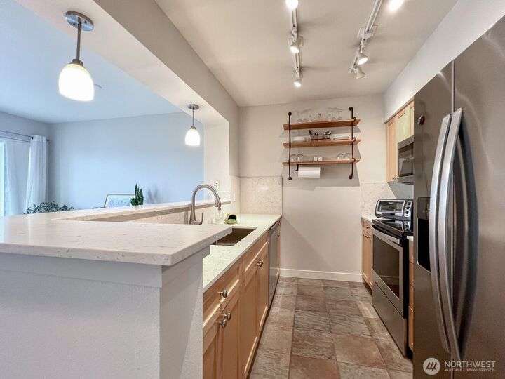 Located in the heart of Ballard, this inviting 5th-floor unit truly has it all! North-facing home features a spacious primary, generous living area, & versatile den ideal for WFH. The kitchen shines with brand-new quartz cntr & ample storage. Walk-in closet & basement unit provide extra storage. Parking is a breeze with secure garage & spot steps from the elevator. Beyond the front door, enjoy unmatched amenities: a rooftop deck with P-Patch & sweeping views, sun deck w/ hot tubs, fitness ctr, sauna, bike storage, lounge, and concierge. Steps to Market, this building is among the most desirable in the city. W/ no rental cap & pet-friendly policies, this condo offers community & city lifestyle in one of Seattle’s most iconic neighborhoods!
