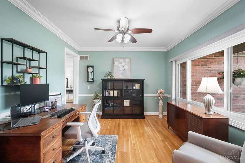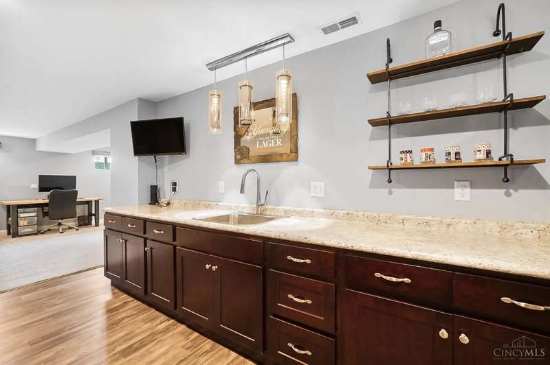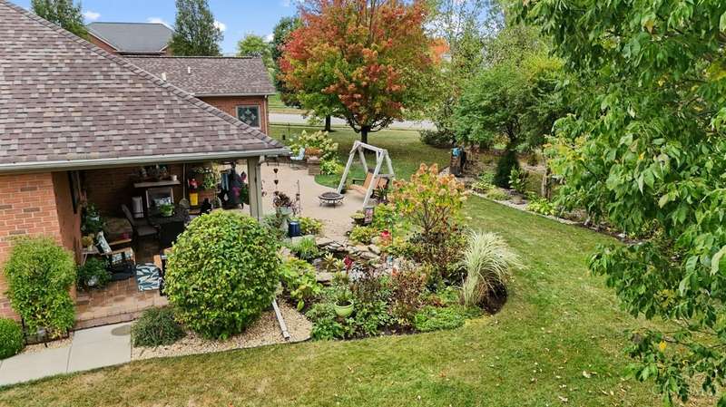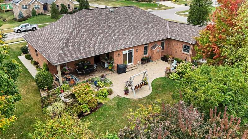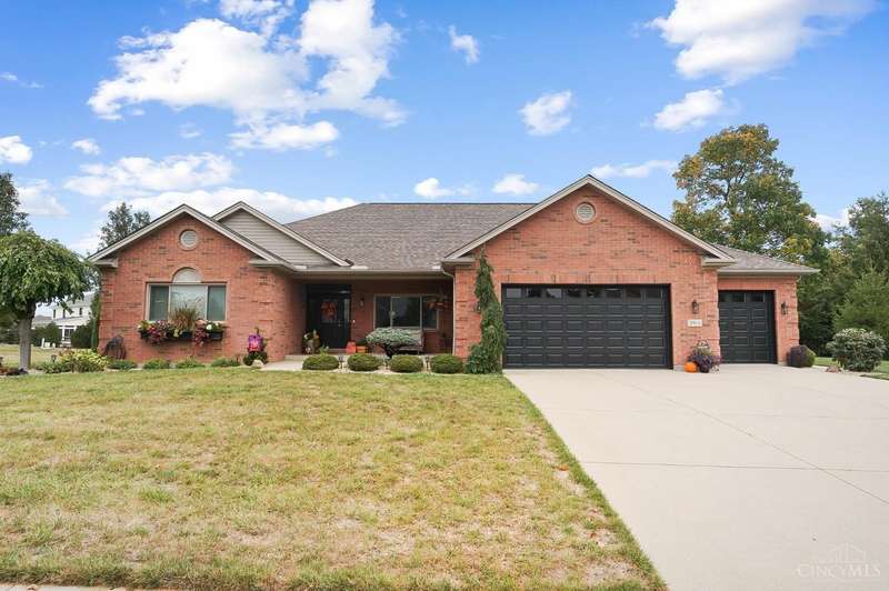 Experience the perfect blend of elegance & comfort in this meticulously cared-for brick ranch on a large corner lot in desirable Ross Trails! Offering 3 bedrooms, 3.5 baths, a 1st-floor study & laundry rm for modern convenience. The open floor plan with soaring ceilings & high-end finishes creates an inviting space, perfect for both everyday living & elegant entertaining. The updated kitchen is both beautiful & functional, w/hardwood floors flowing seamlessly into the dining & living areas. The spacious primary suite provides a true retreat w/a walk-in closet & spa-like shower. The fully finished lower level is ideal for relaxation or fun, offering a HUGE family/rec room w/egress, wet bar, full bath, & versatile bonus room that could serve as a 4th bdrm. Outdoors, enjoy covered front & rear porches, a beautiful, expansive patio, & a serene pond - perfect for relaxing in the AM or PM. With an oversized 4-car garage (3-car w/tandem) & impeccable maintenance, enjoy luxury & peace of mind!