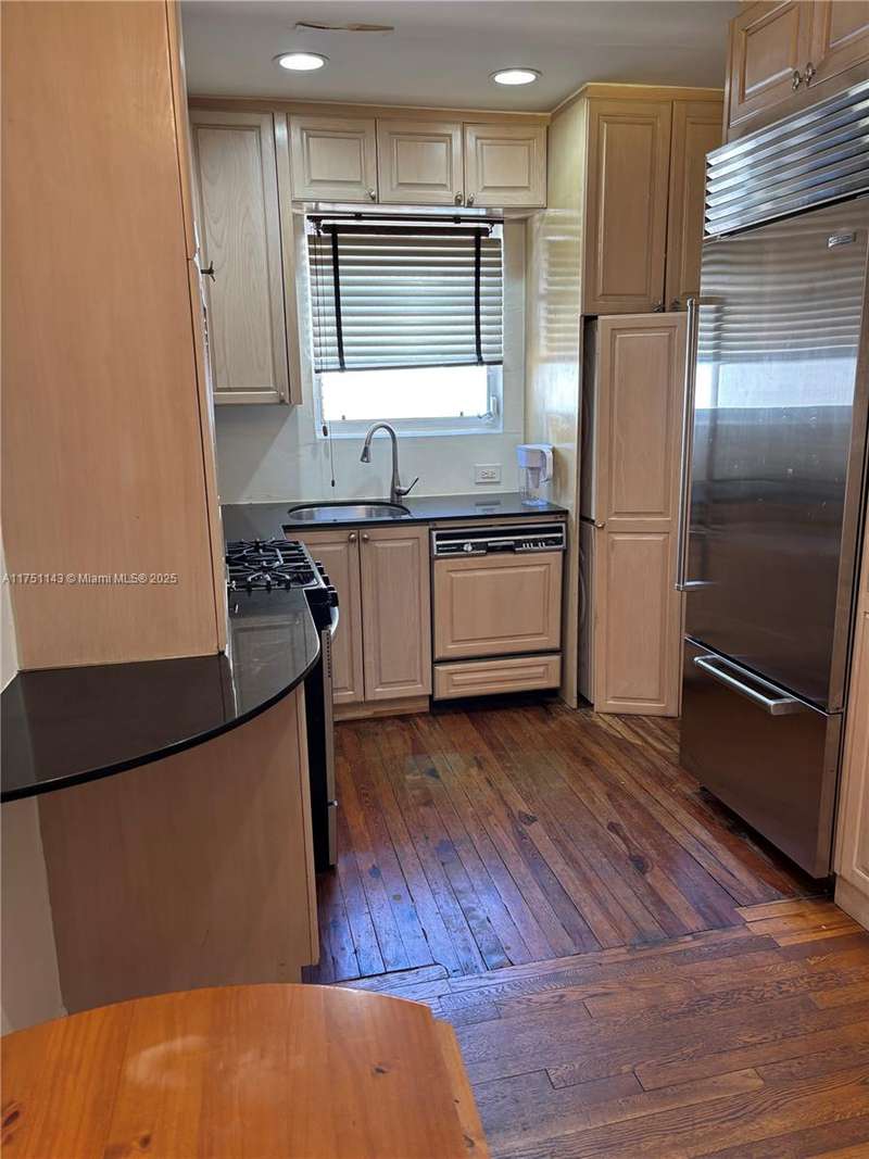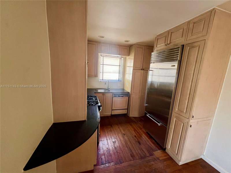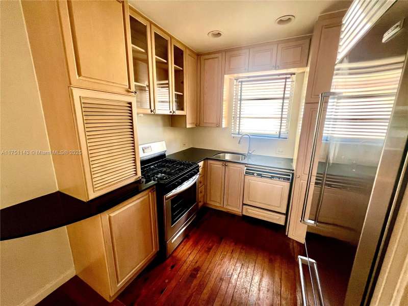 A spacious and well-appointed corner unit nestled within a picturesque Art-Deco building, that incorporates American Mediterranean Revival architectural elements. Located conveniently just 1 block from Lincoln Road and Flamingo Park, this unit offers ample natural light. The floor plan is designed with exceptional functionality, featuring an open and inviting layout. The original pine tree flooring adds a touch of elegance & warmth. Equipped with top-of-the-line appliances, Sub-Zero refrigerator, Bosch washer&dryer, and a new range. Additionally, the air conditioning compressor has been recently replaced. The unit boasts a western-facing view of Meridian Avenue, with windows that provide views of the south & north. Easy to show, the unit is vacant.