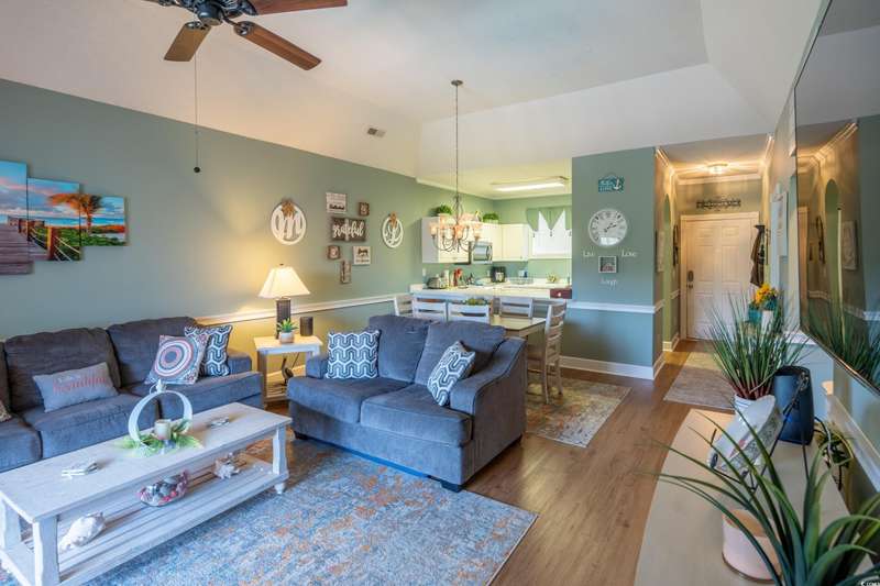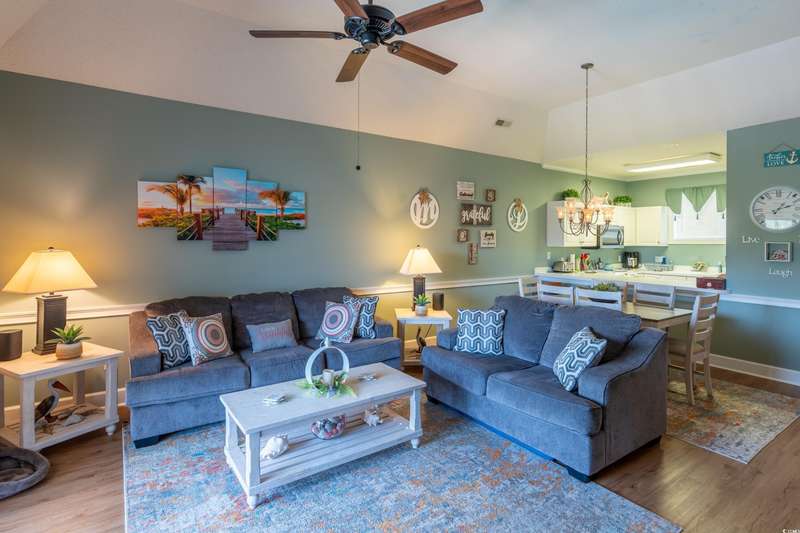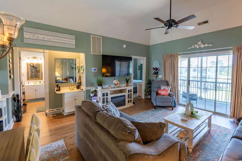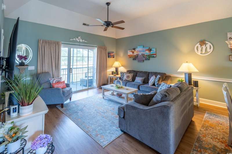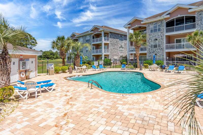 Gorgeous views of the golf course/lake area and pool area from your screened in private balcony. This condo is located on 36 hole golf course (Myrtlewood Golf Course) and driving range. Move in ready condition. This is a 3rd floor unit so no noise from above. There is an elevator in the building, which is just steps away from your entryway. New LVP flooring in all areas except the bedrooms. Beautiful, move right in. One mile to Broadway at the Beach and close to all that Myrtle Beach has to offer.