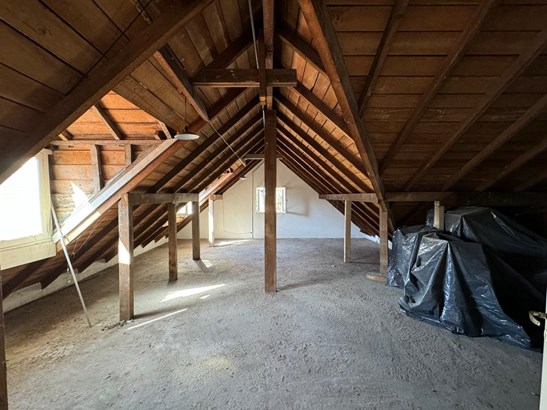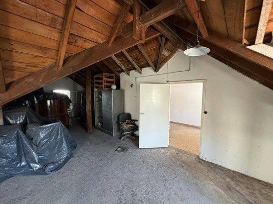 En el primer piso una terraza/balcón, una habitación y un altillo de 115m2 aprox con ventanas.