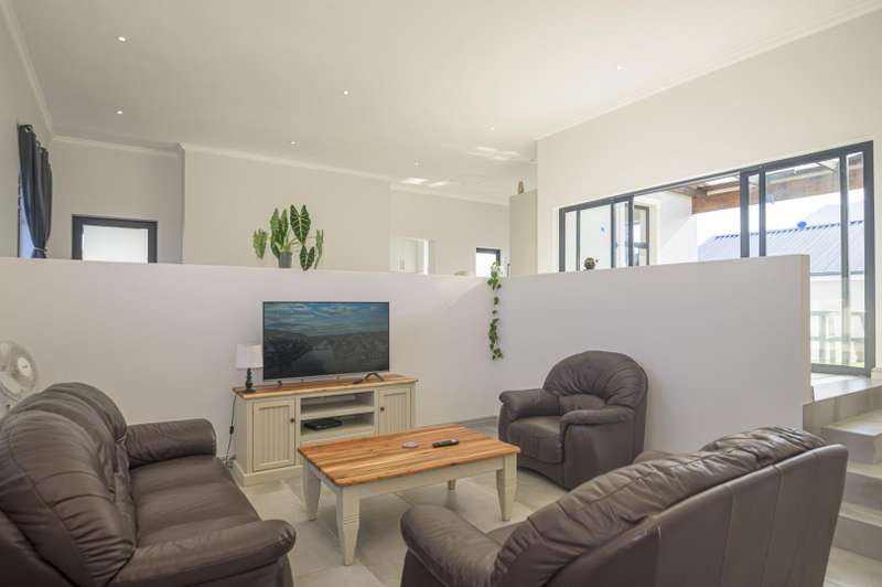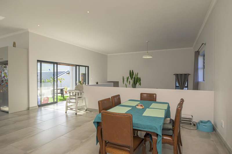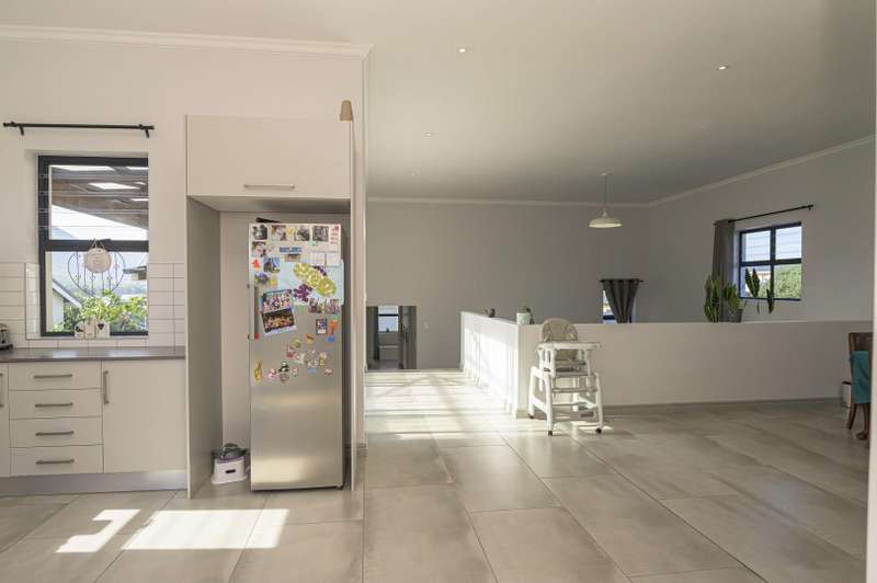 Embrace contemporary living in this beautifully designed home, perfectly positioned to capture stunning mountain views in the tranquil suburb of Vermont. The expansive open-plan design seamlessly connects the lounge, dining, and kitchen areas?Çöoffering a spacious and adaptable environment ideal for both relaxed living and effortless entertaining. The kitchen is a culinary pleasure, featuring a generous walk-in pantry, catering to both style and functionality. Accommodation includes three generously sized bedrooms. The main suite is a serene retreat, complete with a luxurious en-suite bathroom offering both a bathtub and a walk-in shower. The additional two bedrooms are equally stylish, sharing a sleek, modern second bathroom. Step outside to a covered patio with a built-in braai?Çöperfect for enjoying outdoor dining or simply soaking in the peaceful surroundings. The low-maintenance exterior ensures your time is spent enjoying your home, not maintaining it. Whether you're seeking a peaceful escape or an elegant space to entertain, this property offers a refined lifestyle amidst the natural beauty of the Overberg.