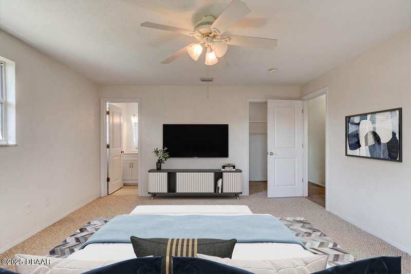 Welcome to your Beautiful Beachside Retreat! This stunning property is perfectly situated between the sparkling Atlantic Ocean and the tranquil Halifax River offering the best of both worlds with beach access at the end of the street. Boasting 3 bedrooms and 2 full bathrooms and an inside laundry room, this home is perfect for those looking for a peaceful retreat.The flexible layout includes a third bedroom that could also be used as a family room or game room. The oversized lot provides a great backyard with plenty of room for a pool, making it ideal for outdoor entertaining and relaxation.Updates include 2023 ROOF, 2022 HVAC, 2018 WATER HEATER, NEW FLOORING, NEW CARPET, NEW INSIDE PAINT, NEW LIGHT FIXTURES, NEW CEILING FANS, NEW DUCT WORK, NEW ATTIC INSULATION and a fantastic kitchen with soft close cabinets and drawers. Located next to the beautiful Bicentennial Park with Basketball and Racquetball courts, Dog Park and many other amenities.