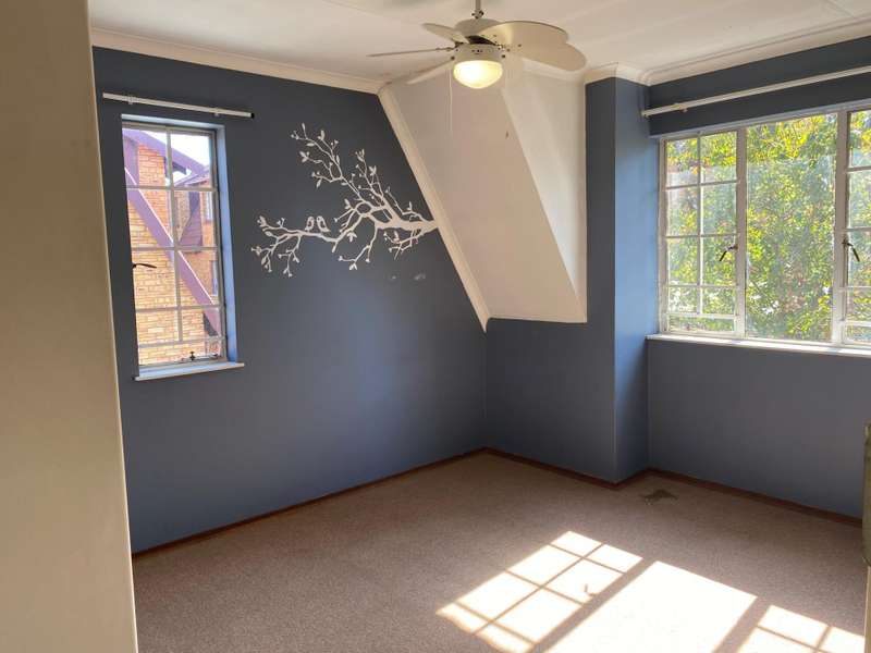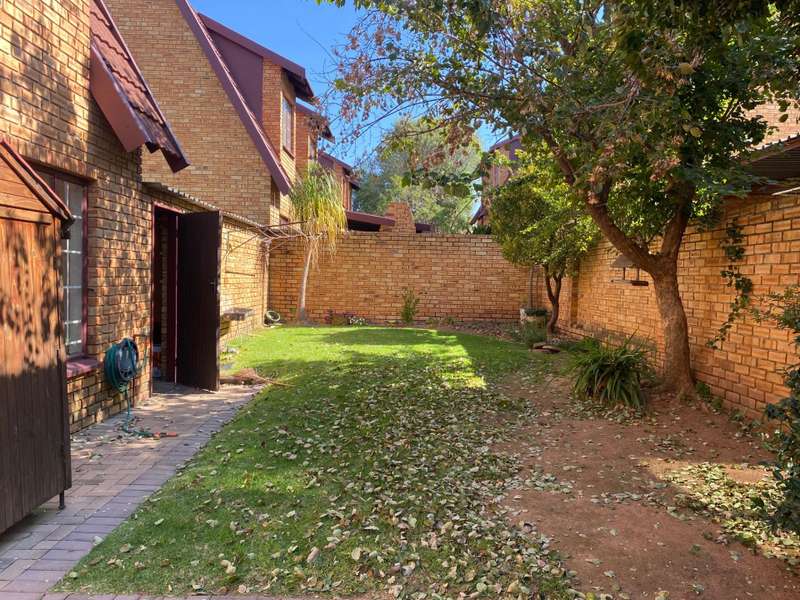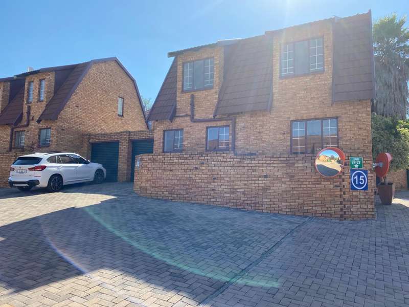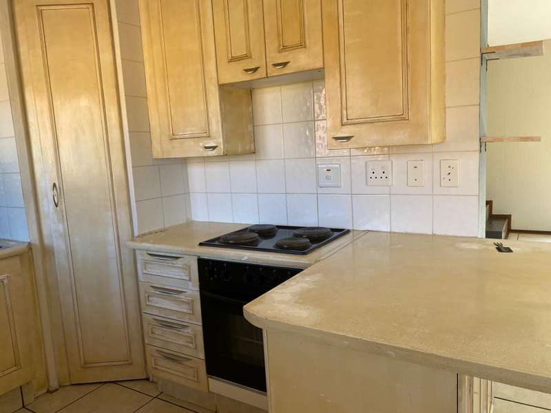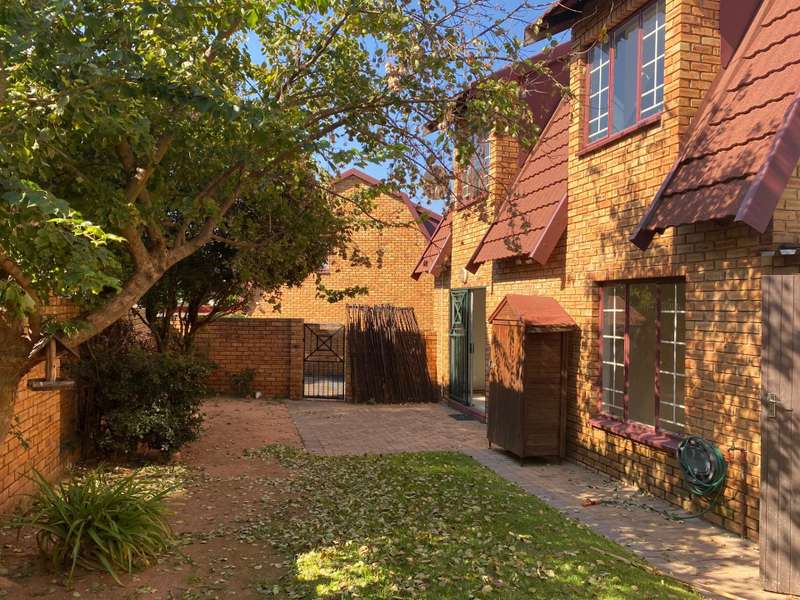 3 Bedrooms 2 Bathrooms Duplex with private garden allows for 2 small pets. Double garage enclosed but not automated. Direct access into the house. 2 carpeted bedrooms upstairs includes the main en suite, has a bath and separate shower, 1 carpeted bedroom downstairs has a bathroom with a bath. Secure complex in Boskruin with 24HR Security offers prime location. Pool in the complex and playground area for the little kiddies. Ideal for a small family and fur babies. Open plan lounge and dining area leads onto the open kitchen which offers space for 2 water appliances and a single door fridge. Electric oven and hob. Pantry cupboard and ample cupboard space. Lounge leads out onto a private garden. All doors have security gates and windows have burglar bars. Fiber ready 2 small pets are allowed with permission by the Body Corporate Rental R12500 per Month excluding metered electricity + complex electricity of R200, complex water of R460; sewage is R800 and refuse is R380 per month. Water charge for the property is included in the owner's levy. Available 1 November 2025.