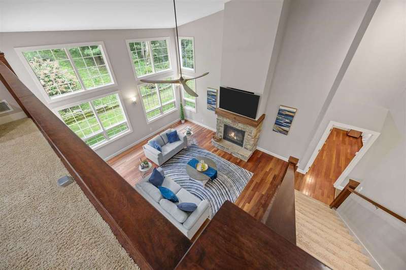 Step inside to a bright living room, where sunlight pours through the large windows and a cozy gas fireplace creates the perfect spot to relax. The bright kitchen boasts stainless steel appliances, including a 40" 5-burner range, and opens to the dining area for easy entertaining. The main-level primary suite features a large walk-in closet and private bath. Upstairs, a versatile lofted area provides space for an office, reading nook, or playroom. The lower level expands your living options with a generous family/rec room and additional flex spaces to fit your needs. Outside, enjoy a private backyard surrounded by mature trees, ideal for time in the hot tub, gatherings, play in the tree house, or quiet moments with nature. Tree house and retaining walls will remain AS-IS. 1yr homeowners warranty included.