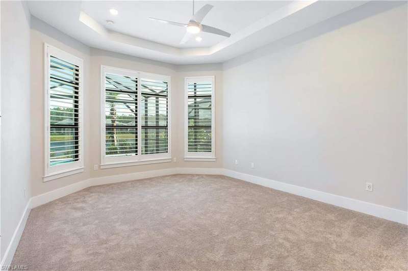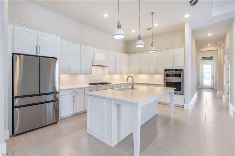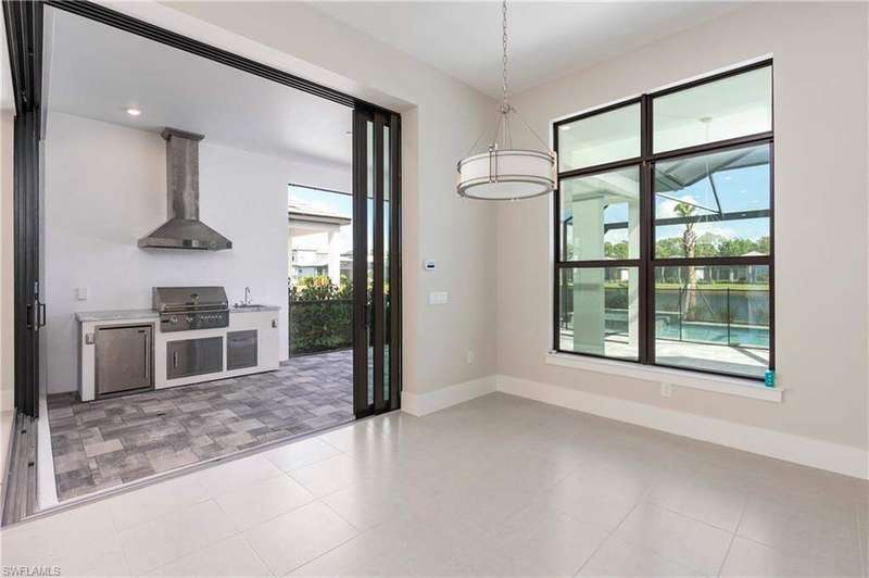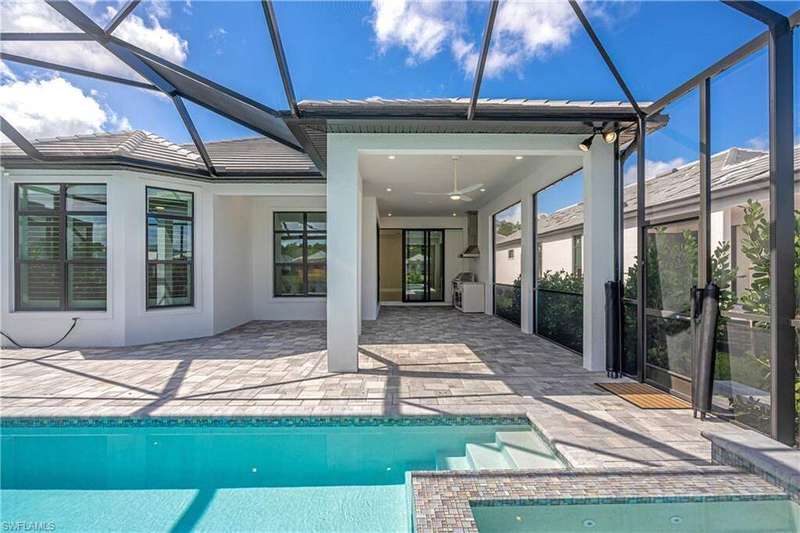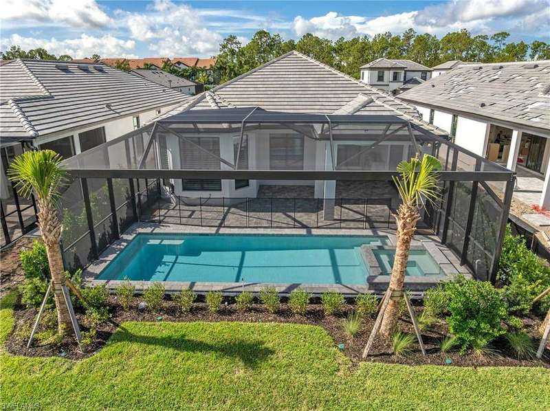 Be the first to live in this stunning new construction home in Caymas, one of Naples' most desirable and up-and-coming communities. This beautifully designed Brixton model offers 2,366 sq. ft. of luxurious living space with 3 bedrooms plus a den, 3 full bathrooms, and a variety of thoughtfully selected upgrades throughout. From elegant quartz countertops and premium cabinetry to custom lighting and designer finishes, every detail has been carefully curated to offer both comfort and sophistication. The spacious owner's suite includes a large walk-in closet and a spa-inspired bathroom featuring dual vanities and a frameless glass shower. The open-concept layout seamlessly connects the modern kitchen and living area to an extended lanai, creating the perfect space for entertaining. Step outside to enjoy a built-in outdoor kitchen and a custom heated pool and spa, all overlooking peaceful water views. Additional features include hurricane-impact windows, soaring 11'4" ceilings, an epoxy-coated garage floor, and refined lighting and fixtures throughout the home. Ideally located near Naples' pristine beaches, world-class shopping and dining, and just a short drive to Marco Island, this home is the perfect blend of luxury, functionality, and location. Don't miss the opportunity to make this exceptional property your own.
