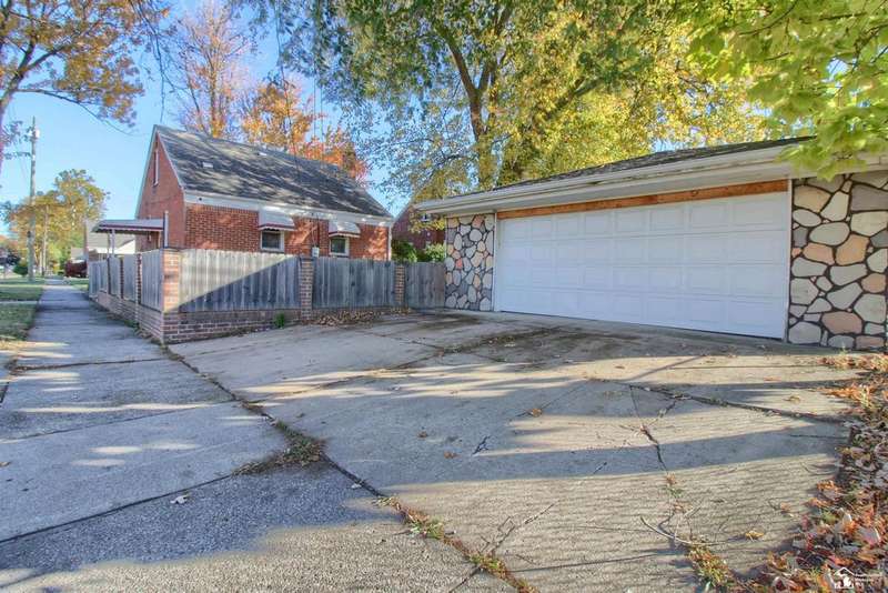 Welcome to this charming and spacious 3-bedroom, 1-bath bungalow located on a spacious corner lot in a great Southgate neighborhood. From the moment you arrive, you'll love the large covered front porch, double driveway, and 2-car detached garage with plenty of parking space. Step inside to find hardwood floors and neutral paint tones. The updated kitchen features modern appliances, ample cabinet space, and a cozy eat-in area perfect for casual dining. The updated full bath is fresh and stylish, while the two lower bedrooms offer double closets for extra storage. The spacious upper primary bedroom provides built-ins and enough room for a king-size bed plus additional furniture. You will enjoy the outdoors in the large fenced-in yard with a patio, perfect for relaxing or entertaining on crisp fall days and nights. The basement is clean, open, and ready for your finishing touches. Located near shopping, parks, schools, and restaurants, this home truly has it all ? clean, move-in ready, and waiting for its next owners!