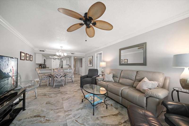 Exceptional Beachfront living! Beautifully furnished and ready for immediate use as a primary, vacation or investment property with its sought after 7-day minimum rental policy, the property offers flexibility in usage and lucrative income potential. Contemporary finishes are beautifully balanced with classic Florida charm! Bathed by natural light to create a welcoming feeling, this is an impressive property. Sleek oversized porcelain tile, spacious fully equipped kitchen with breakfast bar, gleaming complementary stone counters, abundant storage, this is a floor plan appreciated by the most selective homeowners. The primary suite with Gulf views offers a large walk-in closet, and private ensuite bath area with walk in shower detailed by stunning vertical tile. Additional two guest suites allow for privacy for guests- ideal for vacationing families. Watch the sunsets from the terrace spanning the entire width of the condo. Easily access wonderful beachside amenities via a private circular staircase just steps to the resort style pool, heated spa, grilling station and expansive lawn area-while taking in the beach side ambiance. Relax on the pool deck and enjoy the views of the glimmering gentle waves of the Gulf and white sandy beach. This is your coastal haven! All systems have been updated – top of the line sliders, HVAC, appliances. Additional attributes include the full-size washer/dryer, and underbuilding assigned parking. This pet friendly community is comprised of 16 condos which add to its charming, casual appeal and is a short walk to restaurants, recreational venues such as pickleball, parks, library and art center. Rarely do these 3-bedrooms, 2 bath condos offering direct Gulf-front access, outstanding rental income, location and convenience to a myriad of activities become available-just minutes to major access roads to Tampa, Clearwater and St Pete. This is an exceptional property for those who desire a beach get away and income to offset expenses when not using. Don't miss this opportunity!