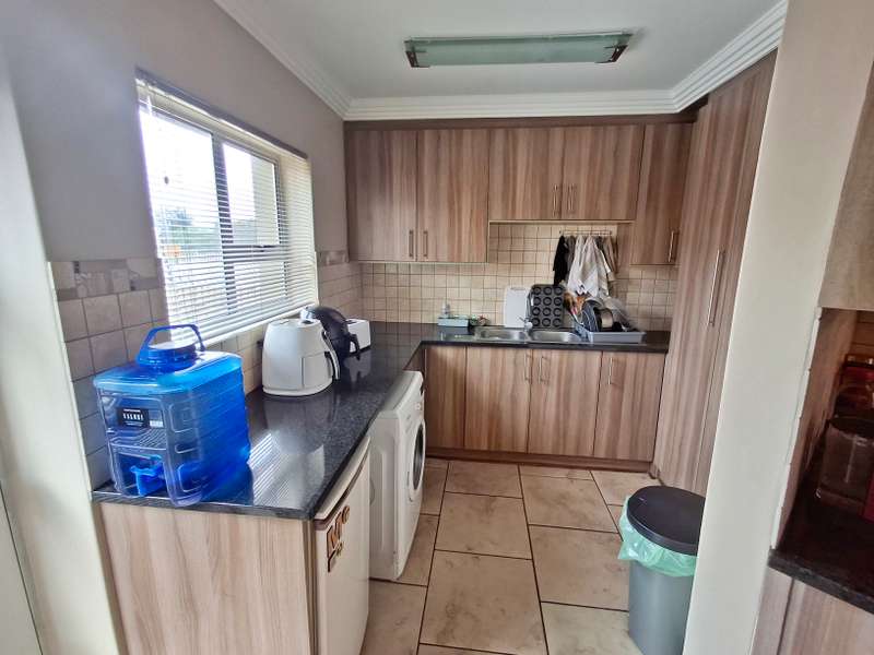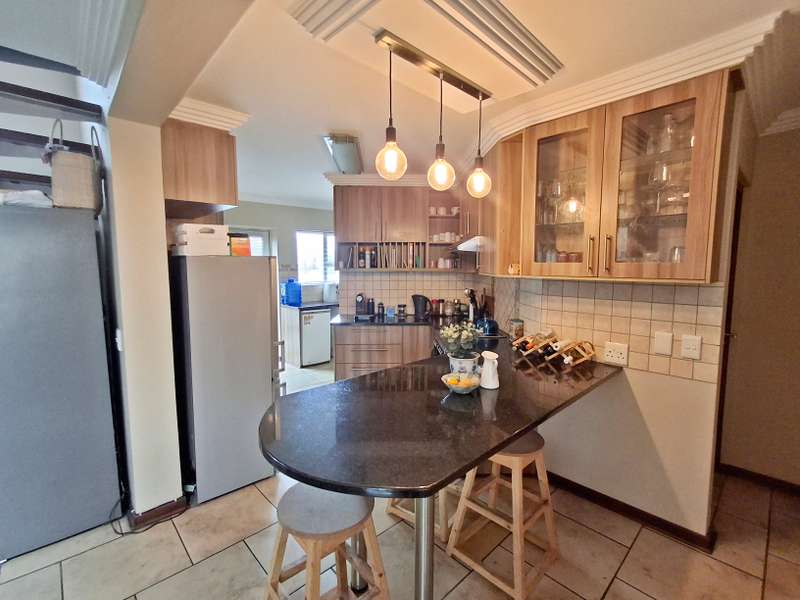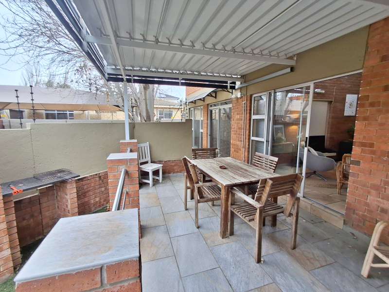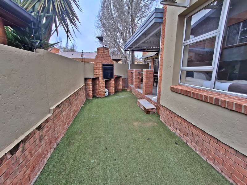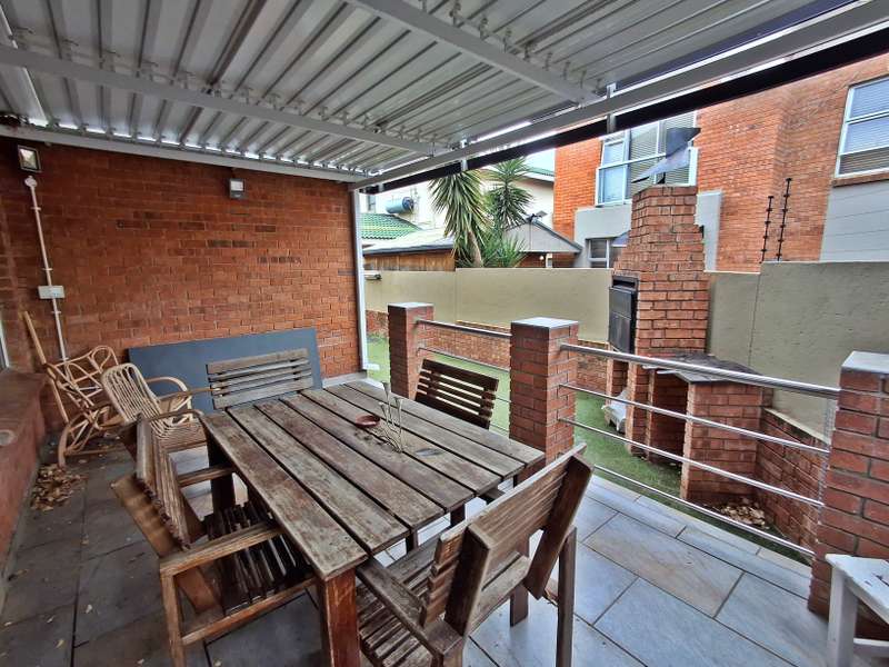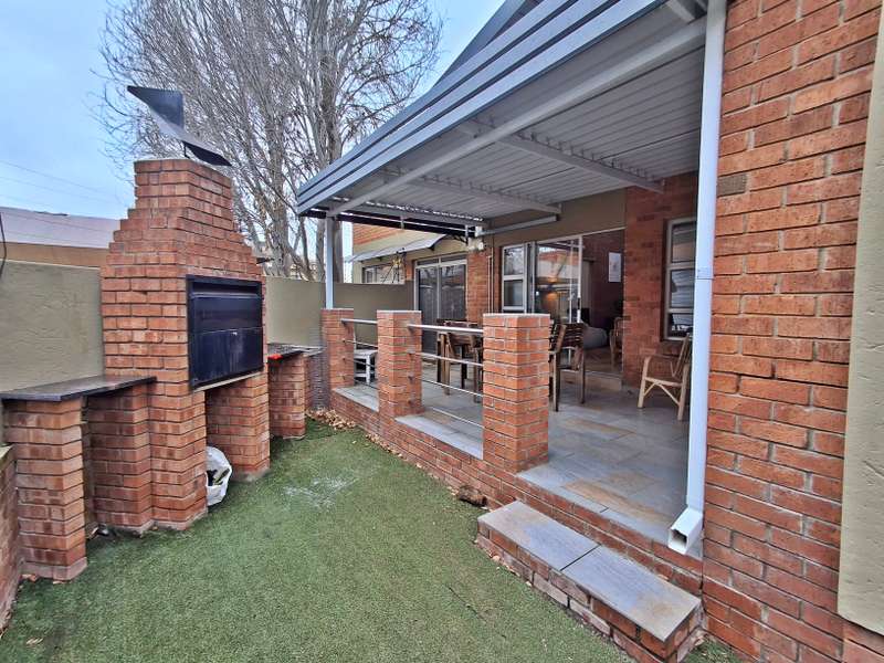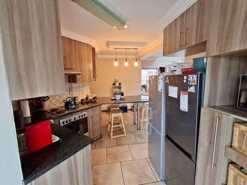 Welcome to this beautifully maintained 3-bedroom, 3-bathroom duet, perfectly located in the sought-after suburb of Langenhovenpark. This home offers the ideal blend of modern living and relaxed entertainment, making it perfect for families or those who love to host. Step into a sleek, modern kitchen complete with a separate scullery – designed for both style and functionality. The open-plan layout flows effortlessly into the spacious living areas, including a dedicated entertainment room with a built-in bar, ideal for social gatherings or relaxing evenings at home. All three bedrooms are generously sized with ample built-in cupboards, while the three bathrooms offer comfort and convenience for the whole family. Outside, you’ll find a built-in braai area and an undercover patio with a stylish louvre roof – perfect for year-round entertaining. The low-maintenance garden adds to the property’s lock-up-and-go appeal. Located just minutes from popular shops and amenities, this home combines comfort, style, and convenience in one perfect package. Don’t miss out – contact us today to arrange a viewing!
