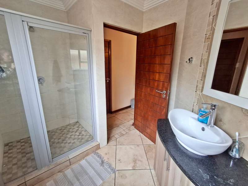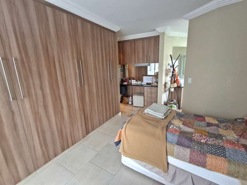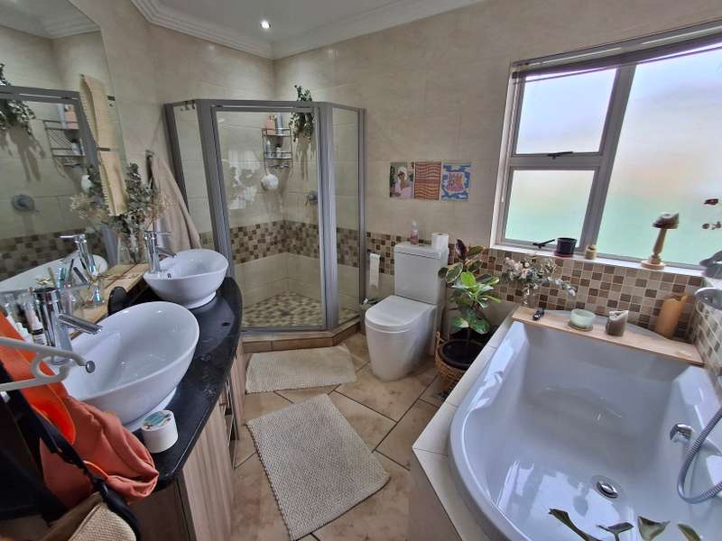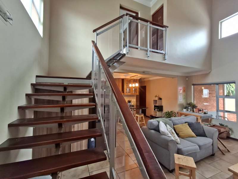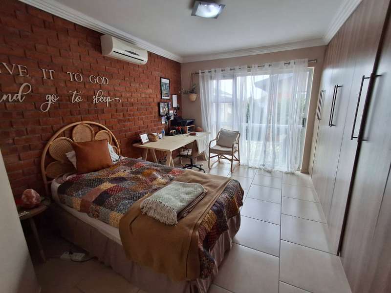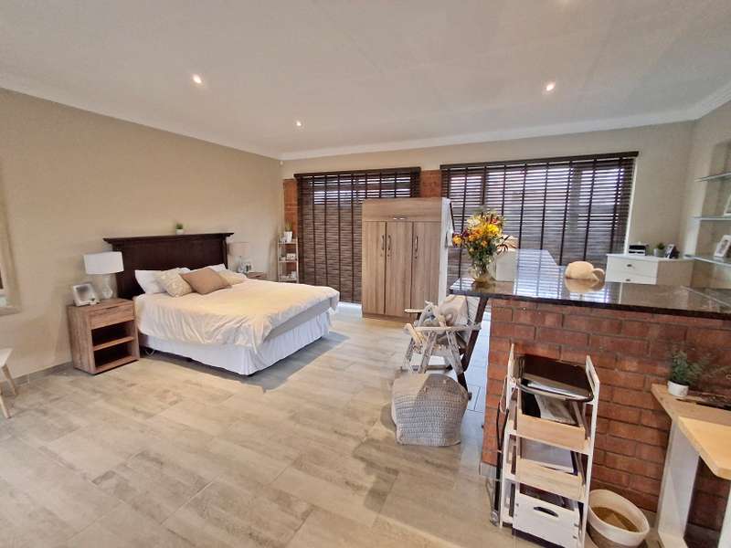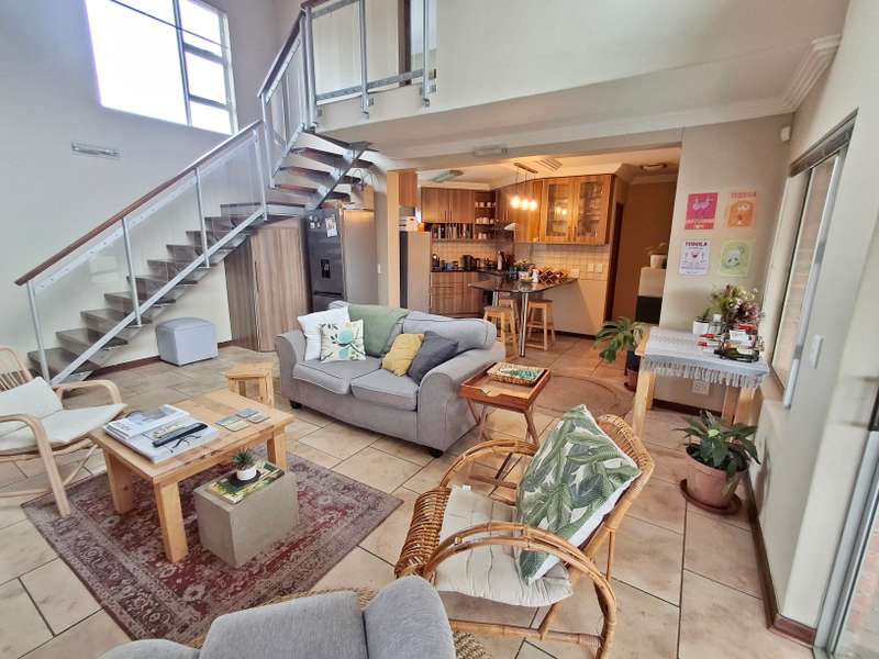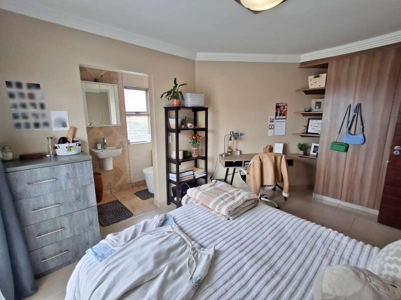 Welcome to this beautifully maintained 3-bedroom, 3-bathroom duet, perfectly located in the sought-after suburb of Langenhovenpark. This home offers the ideal blend of modern living and relaxed entertainment, making it perfect for families or those who love to host. Step into a sleek, modern kitchen complete with a separate scullery – designed for both style and functionality. The open-plan layout flows effortlessly into the spacious living areas, including a dedicated entertainment room with a built-in bar, ideal for social gatherings or relaxing evenings at home. All three bedrooms are generously sized with ample built-in cupboards, while the three bathrooms offer comfort and convenience for the whole family. Outside, you’ll find a built-in braai area and an undercover patio with a stylish louvre roof – perfect for year-round entertaining. The low-maintenance garden adds to the property’s lock-up-and-go appeal. Located just minutes from popular shops and amenities, this home combines comfort, style, and convenience in one perfect package. Don’t miss out – contact us today to arrange a viewing!