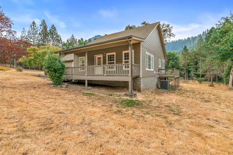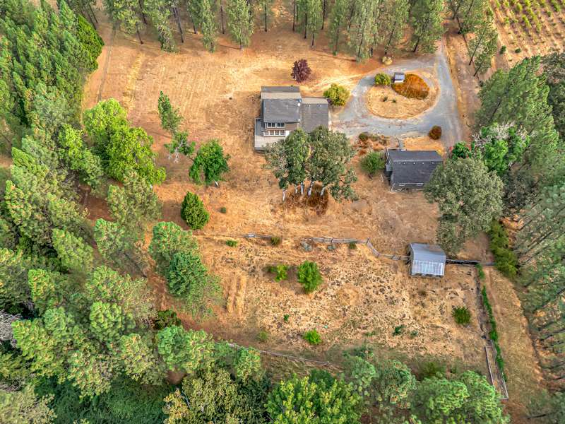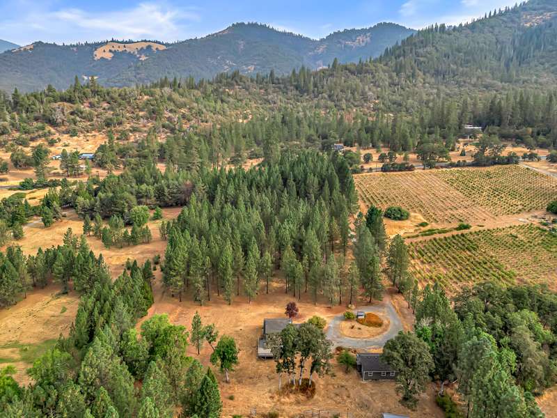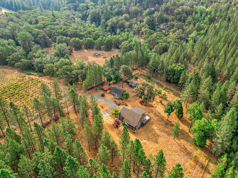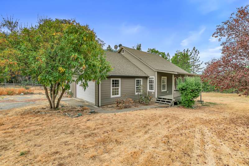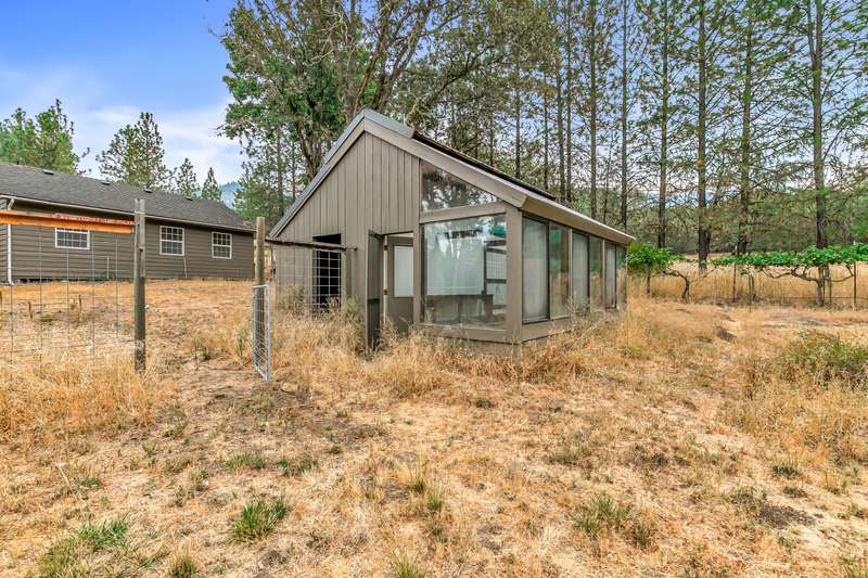 Just four miles north of Applegate, this hidden gem offers ten acres of fertile land along Slagle Creek, with vineyard views and a peaceful country setting. The 1,488 sq ft main residence, built in 1992, features vaulted ceilings, a pellet stove, A/C, an open staircase, sunroom with retractable awning, utility room, and oversized finished garage. A separate guest room with full bath and adjacent shop provide flexibility for visitors or creative projects. Outdoors, enjoy a barn/greenhouse, deer-fenced orchard and garden, in-ground sprinklers, and the tranquil creek. Whether you're dreaming of a hobby farm, nature retreat, or serene lifestyle, this property blends beauty and function in an idyllic location.