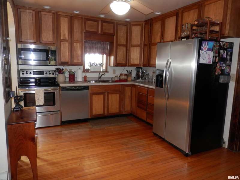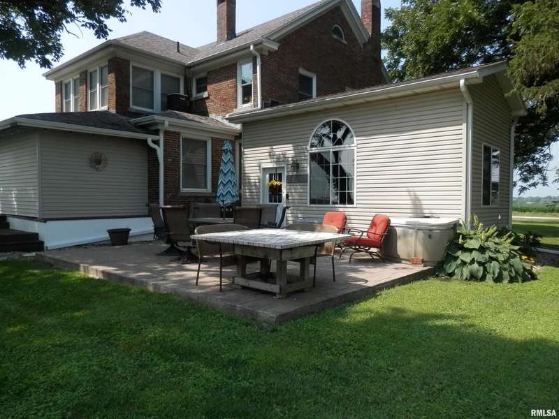 Idyllic 4 BR, 2 story farmhouse setting serenely on 3.13 acres w/ 5 outbuildings is ready to fulfill all your rustic dreams! Current owners have done many wonderful improvements including: new roof 2020, replaced windows ~2015, added main floor laundry room, constructed 22x13 family room w/ vaulted ceilings & gorgeous arched windows leading to 22x20 concrete stamped backyard patio w/ hot tub, newer main floor 1/2 bath w/ Corian counter, vanity, tile floor, stool, & lighting, newer kitchen sink & breakfast nook w/ newer cabinets & counter, stainless steel appliances, paint & light fixtures throughout home. Beautiful lead glass windows, hardwood floors, arched entries, & original woodwork continue to showcase the historical charm of this country gem. Outside improvements include new huge front porch w/ track decking, fiberglass pillars, large back composite deck, dog house & horseshoe pits. 75x30 metal pole building has newer concrete floor, 100 amp service, & 7000 pound rotary lift which stays.52x45 south barn & 45x30 east barns both have concrete floors + lofts. Quonset hut (48x20) has 1 concrete stall. 360 ft deep drilled well has never run dry & has 2017 pressure tank. Older 55 ft covered dug well has been abandoned, but could be resurrected. CA 2011 in floored attic area gravity feeds to lower level. 1000 & 500 gallon propane tanks currently contain over 1000 gallons from Ryden Farm Supply. Another 1000 gallons has already been paid on contract. Typically would cover 2 yrs