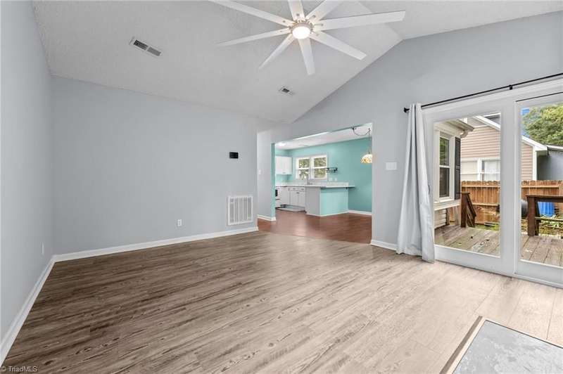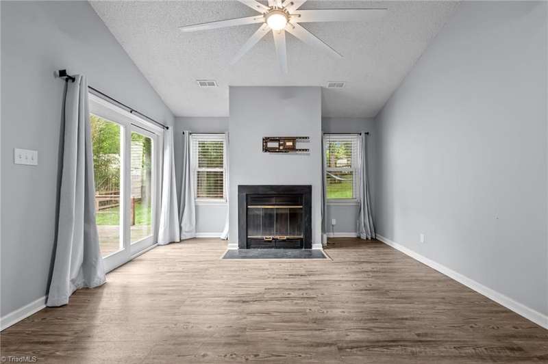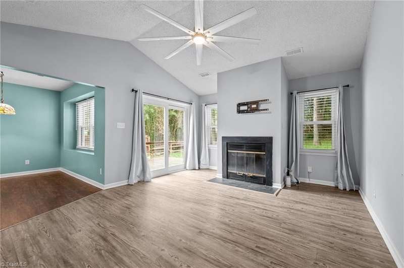 This charmer is ready for you to call home! A lovely open floor plan brings together the kitchen, dining and living room for maximum entertainment and spacious living space. Vaulted ceilings in the living room, fireplace flanked by large windows and a sliding door to the deck, create an excess of abundant natural light. The fenced in back yard is a fantastic size for entertaining, gardening or creating an outdoor oasis.