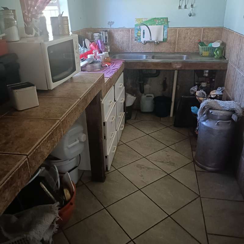 WATER – WATER - STRONG BOREHOLE - FOUNTAIN 27 Ha farm with arable land of approximately 12 Ha and 14 Ha bushveld / grazing land and 1 Ha living area. The living area consists of a 4-bedroom house and a 1-bedroom flat, storeroom/garages and kraal for livestock. Water is supplied from a strong borehole (+- 20000l/h) and a fountain. Electricity from Eskom 3 phase with 25 KVA. Boundary fencing on the farm is good and has been constructed to accommodate sheep / cattle farming. The main house consists of (1) 4 Bedrooms (2) 2 Bathroom (3) Open plan dining / lounge (4) Living area (5) Kitchen with scullery and laundry.