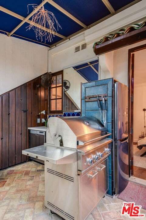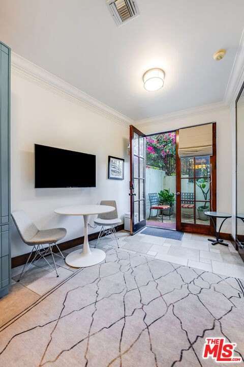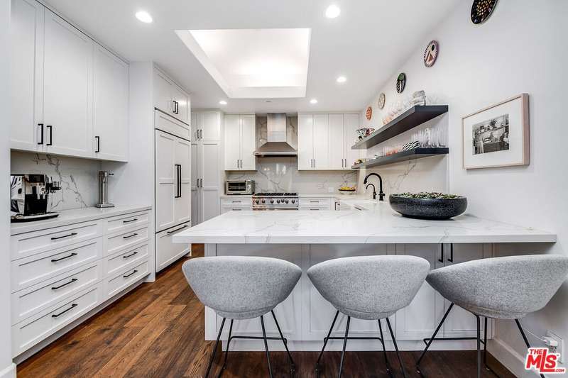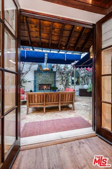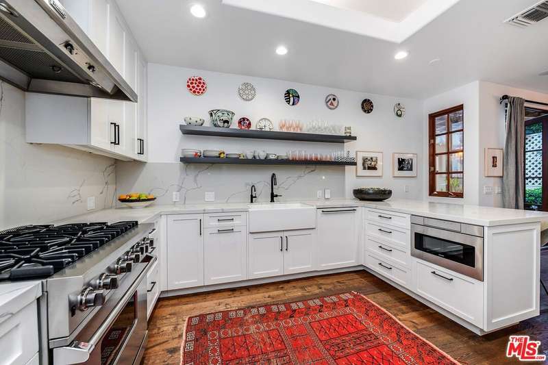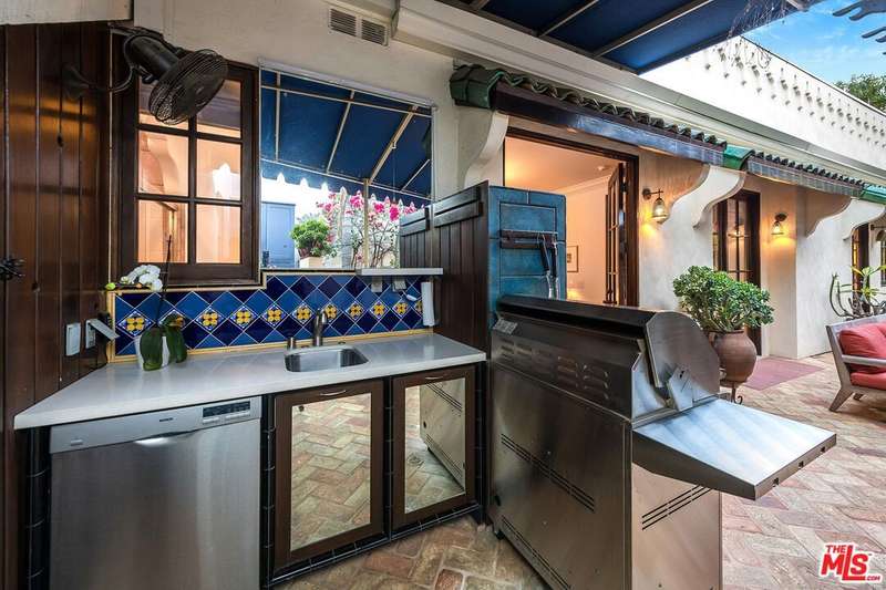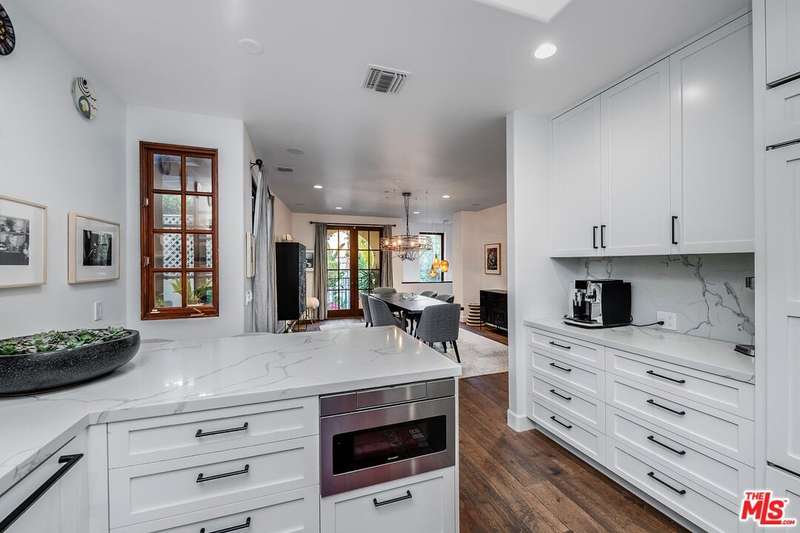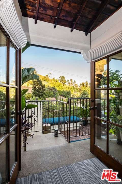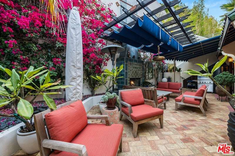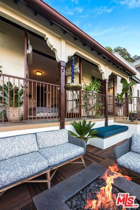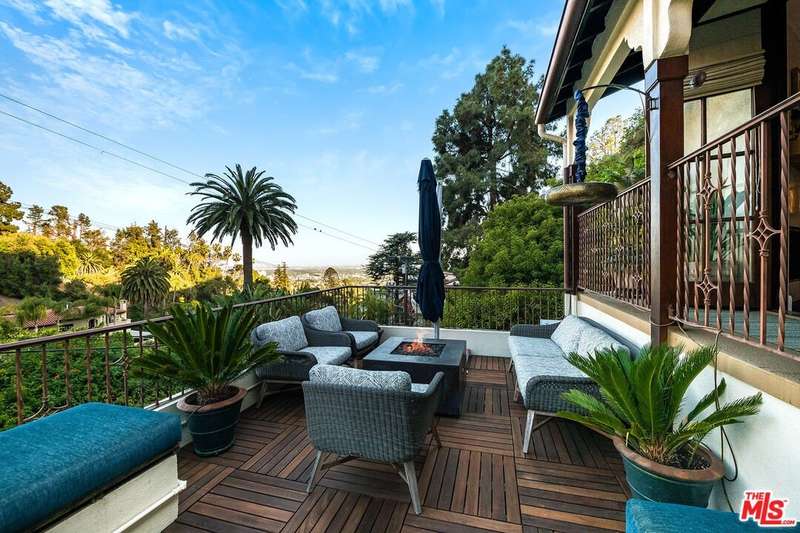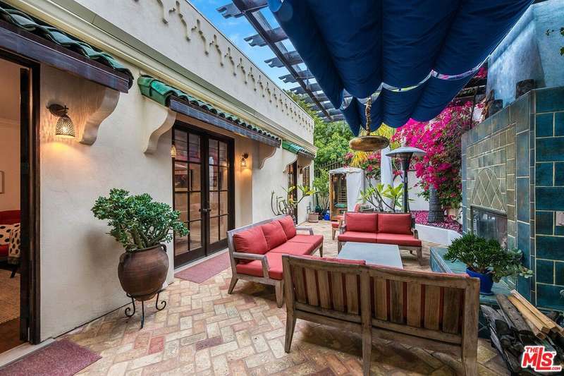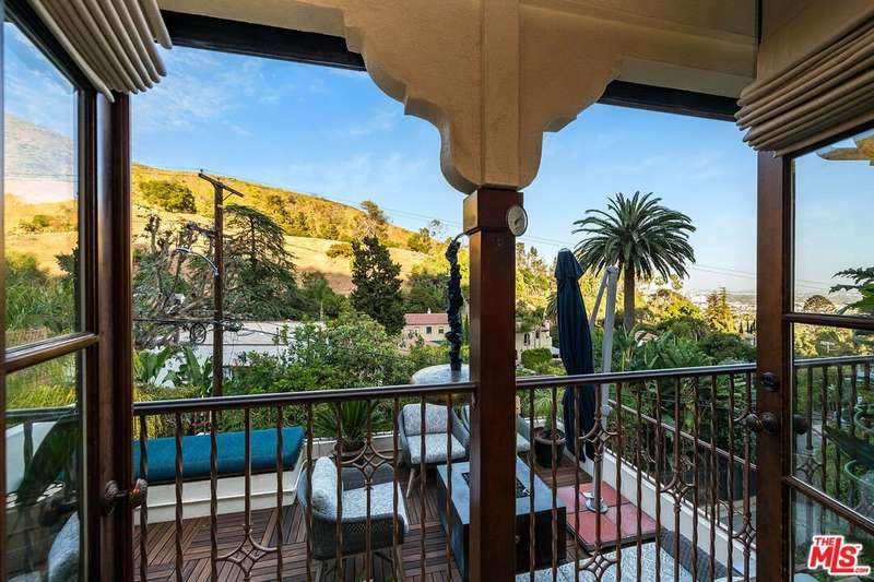 Featured in The Wall Street Journal this enchanting Villa in a premier Hollywood Hills location blends exotic elegancewith modern comfort just moments above the Sunset Strip. Enter through romantic archways into the dramatic "Grande Salon," where soaring 10-foot coffered ceilings, rich oak finishes, and ironwork evoke the atmosphere of a luxurious global retreat. The open-concept gourmet kitchen flows into a spacious dining area, with French doors that lead to outdoor terraces, ideal for sunset entertaining or quiet stargazing. With approximately 3,800 sqft of indoor-outdoor living, this home is designed for both grand gatherings and intimate escapes, featuring a fireplace patio, multiple view terraces, and a fully outfitted outdoor kitchen with dishwasher, stainless sink, and full-size refrigerator. A built-in water filtration system ensures high-quality water throughout the home, while an integrated fire sprinkler system provides discreet, state-of-the-art fire suppression for enhanced safety. An infrared sauna on the patio adds an indulgent spa-like touch to the outdoor experience. The primary suite offers its own fireplace, while two additional bedrooms with en-suite baths open to magical outdoor spaces. A private in-law unit with separate entrance, kitchenette, bath, and off-street parking offers added flexibility. Distinctive details include custom tile, hardwood floors, hanging lanterns, five sets of French doors, and a full solar panel system (owned) for energy efficiencyall echoing the timeless craftsmanship of an old-world villa. Just minutes from Runyon Canyon, Wattles Mansion, Sunset Strip, The Grove, and the Hollywood Bowl, this one-of-a-kind residence offers a rare blend of global romance and modern ease.