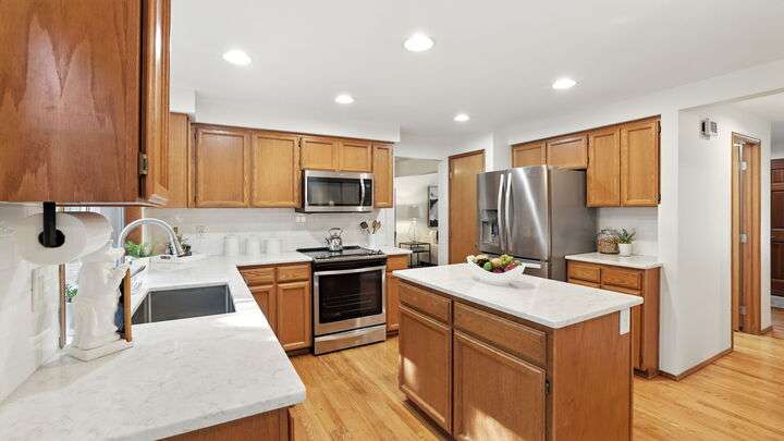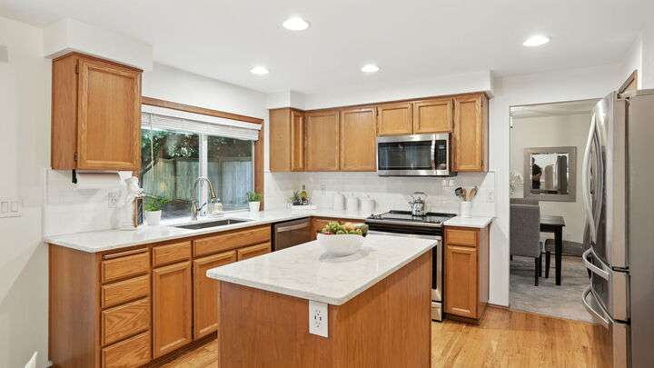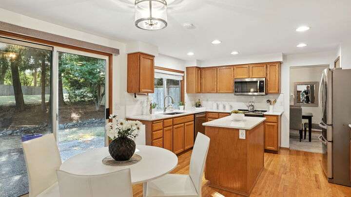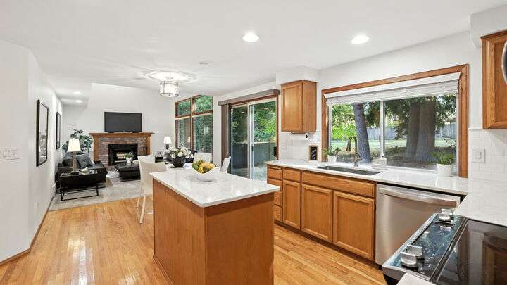 Welcome to Audubon Ridge in Klahanie! This four-bedroom home sits on a quiet street and backs directly to one of Klahanie’s scenic trails. Klahanie features two pools, sports courts, miles of trails, and numerous parks. Mature landscaping enhances the curb appeal, while inside you’ll find a freshly painted interior, hardwood entry, and a circular floorplan. The updated island kitchen offers quartz counters, stainless appliances, and nook with slider to the backyard. The adjoining family room has vaulted ceilings and a brick fireplace. Upstairs, the spacious primary suite includes a bay window and dual-vanity bath with quartz. Three additional bedrooms plus updated baths complete the layout. Backyard opens to the trails. Issaquah Schools.